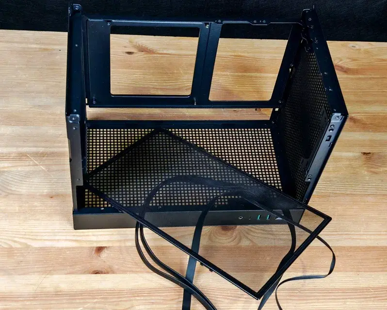 Сама панель находится на левой стороне пьедестала корпуса, имеет глянцевую наружную поверхность и подключается к порту USB-А системной платы кабелем длиной 27 см.