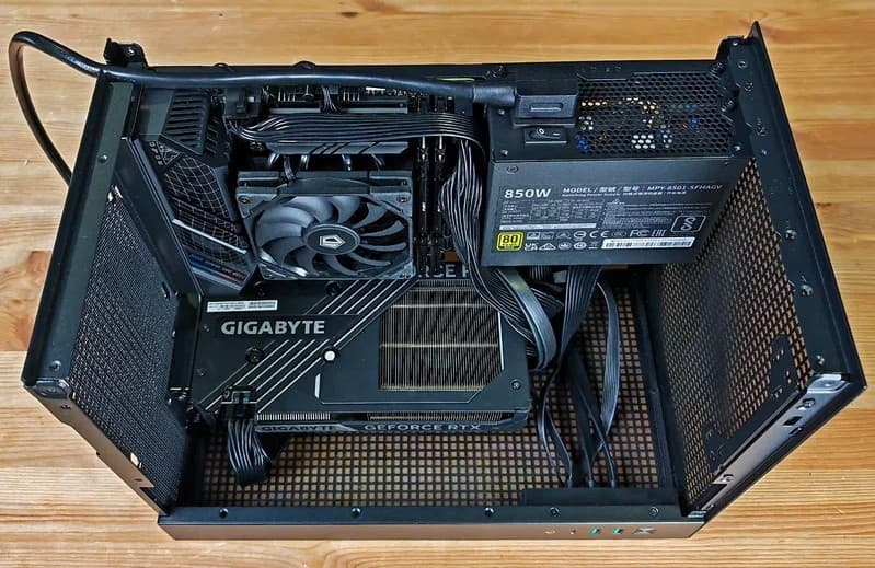 При использовании блока питания формата ATX получается немало ограничений на выбор и установку других комплектующих, поэтому лучше сразу ориентироваться на БП SFX/SFX-L. И лучше выбирать блок питания со съемными проводами: прятать лишние в корпусе некуда.
