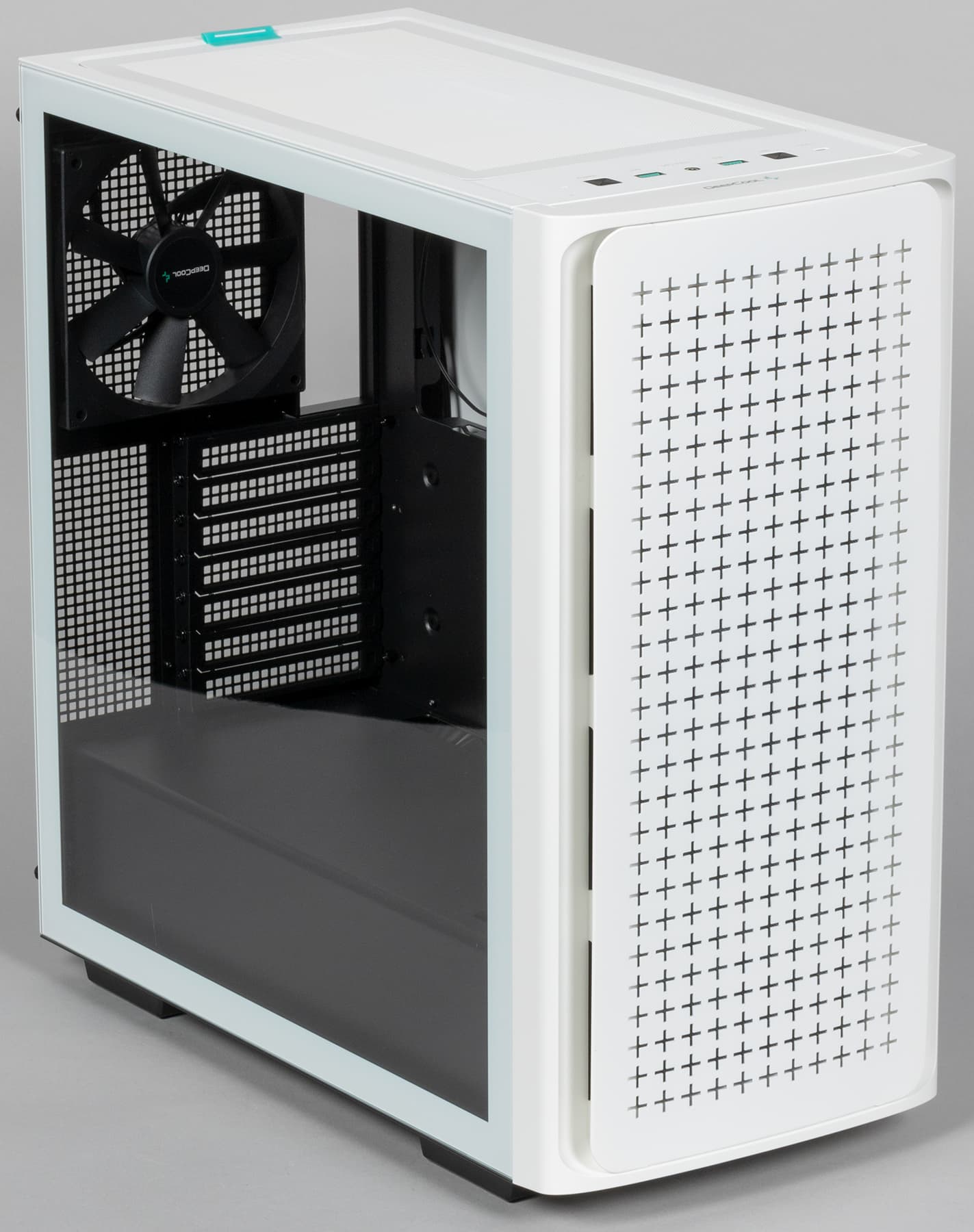 В этот раз мы изучим еще один относительно бюджетный игровой корпус с ARGB-подсветкой и стеклянной боковой панелью: Deepcool CK560. У данной модели лишь один вариант накладки спереди — перфорированный, но в ассортименте Deepcool присутствует похожий корпус со сплошной передней панелью — модель CK500.