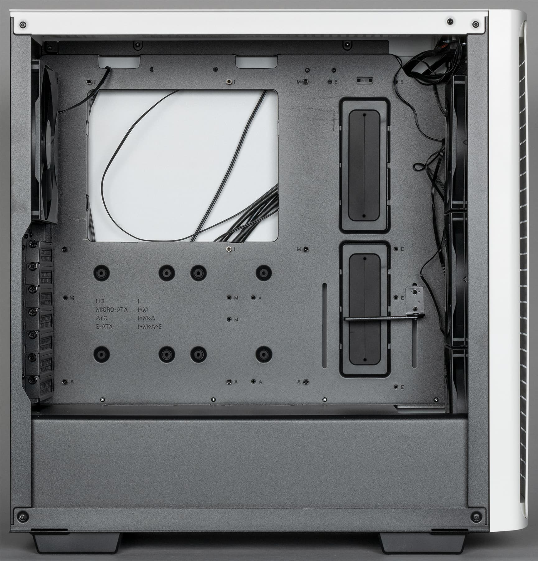 В корпусе можно установить до трех радиаторов: спереди — до 360 мм, сверху — до 280 мм.