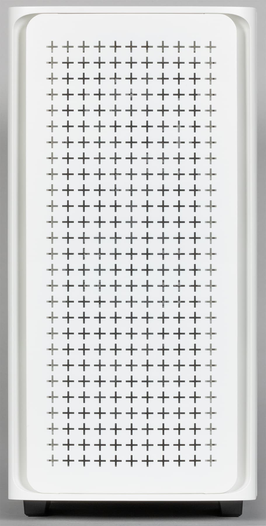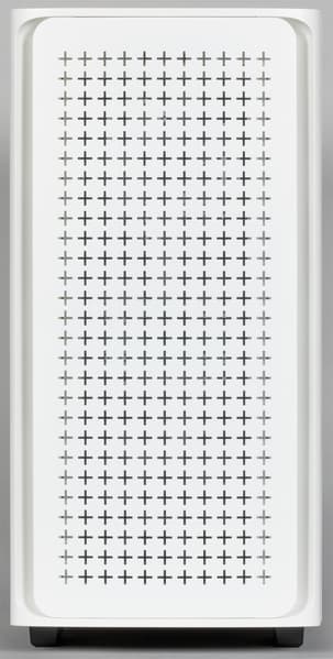 Передняя панель корпуса стилизована под решетку: это стальной лист, проштампованный крестовыми отверстиями, что придает некоторую свежесть дизайну. Сейчас подобное оформление весьма популярно, и такие решетки можно встретить далеко не только в корпусах. Также определенной свежести дизайну добавляют скругленные вертикальные ребра передней панели. Металлические элементы корпуса окрашены вполне добротно — видимо, порошковой краской.