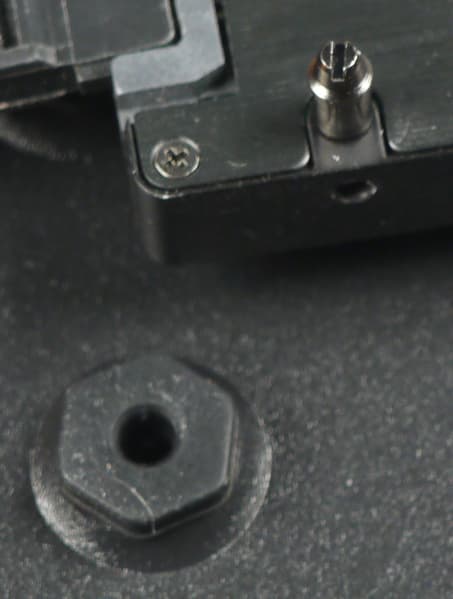Конструкция их крепления достаточно оригинальная: в накопитель вкручиваются винты с цилиндрической головкой, которые вставляются в резиновые втулки, вдетые в монтажные отверстия, то есть фиксация осуществляется только за счет силы трения. Втулки уже установлены на производстве, что удобно.