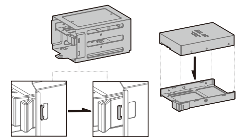 Полноразмерные жесткие диски устанавливаются в предназначенную для них двухместную корзину, которая выполнена съемной.
