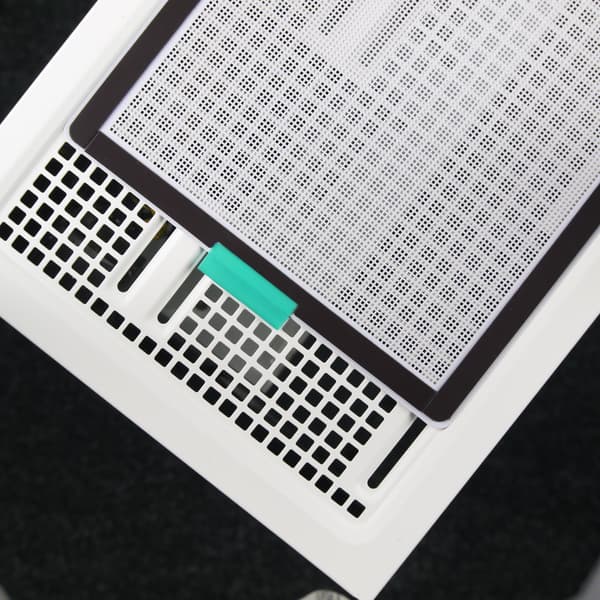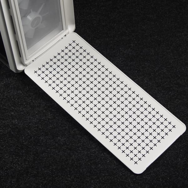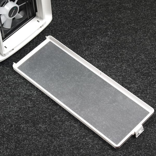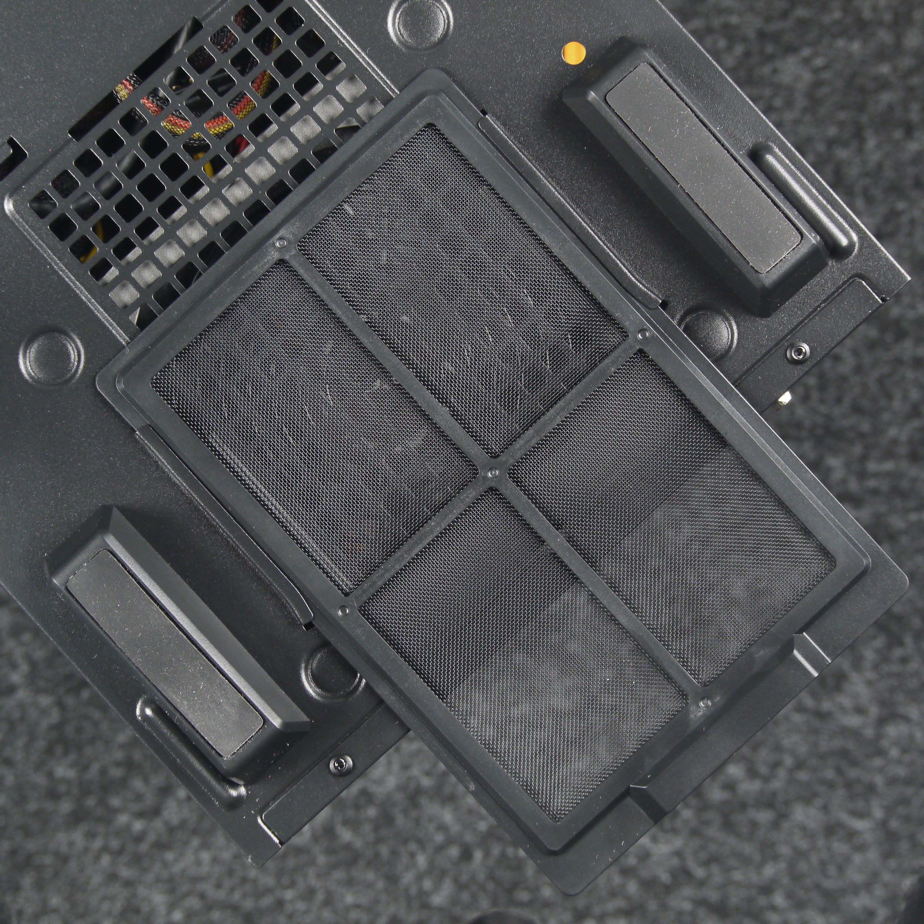 Фильтр для верхней стенки удобнее всего снимается и ставится на место благодаря магнитной окантовке, однако выполнен он из достаточно крупной пластиковой сетки, а потому большая часть мелких пылинок просочится сквозь него в корпус. С другой стороны, он отлично поможет от падения внутрь корпуса монет, ключей, каких-либо мелких предметов, да и от части пыли тоже спасет.