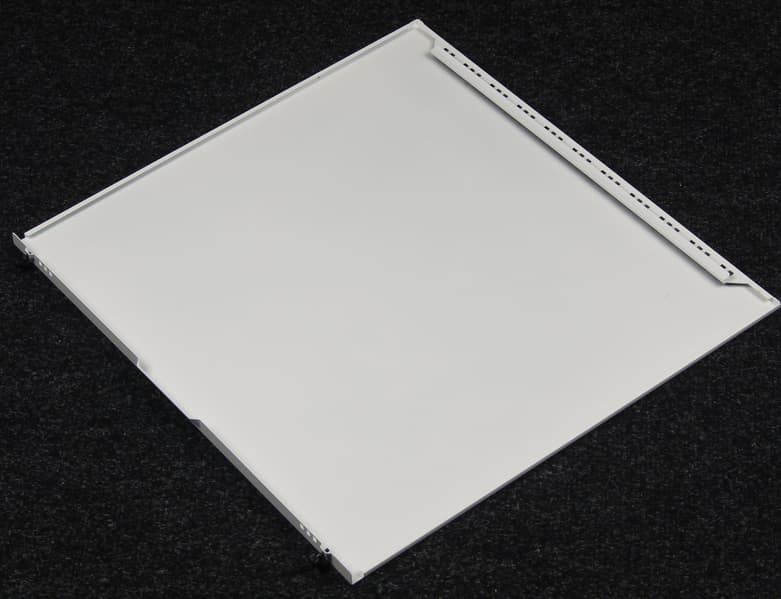 Левая боковая стенка выполнена из закаленного стекла со стальными накладками. Система крепления — гильотинного типа: стенка надевается сверху вниз и упирается в зацепы, благодаря которым и фиксируется.