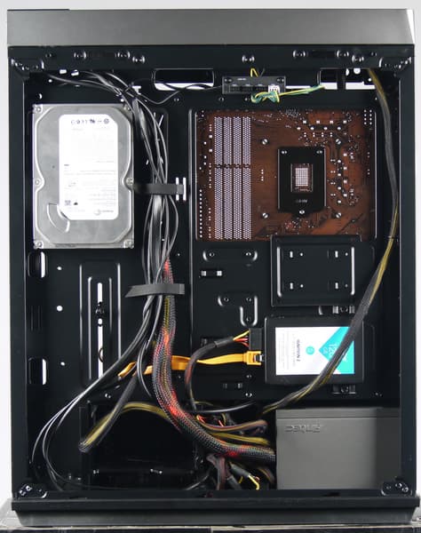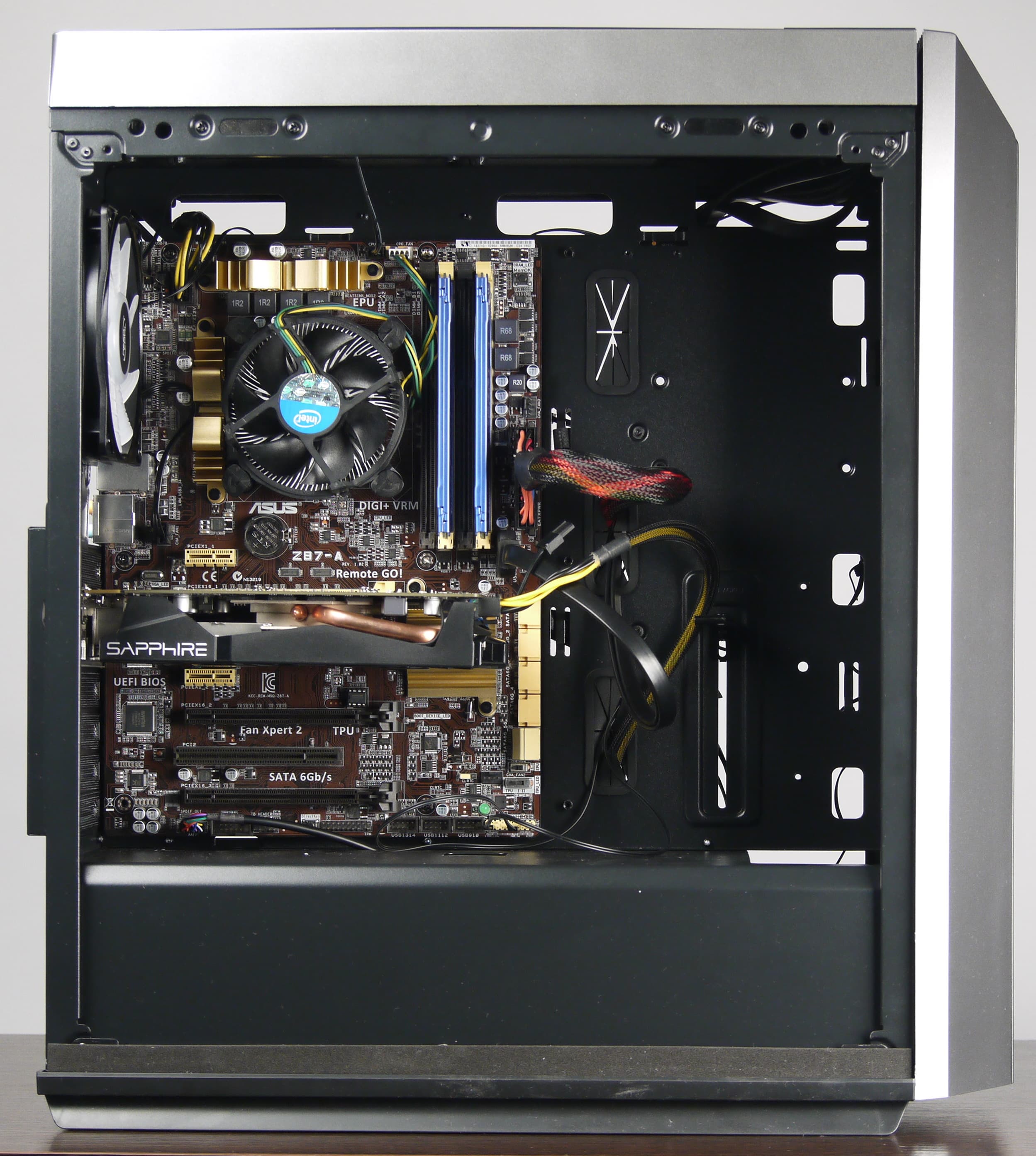 Порядок сборки ПК в данном корпусе особого значения не имеет, так как компоненты разнесены и не мешают друг другу, но лучше начать с установки блока питания и прокладки проводов.