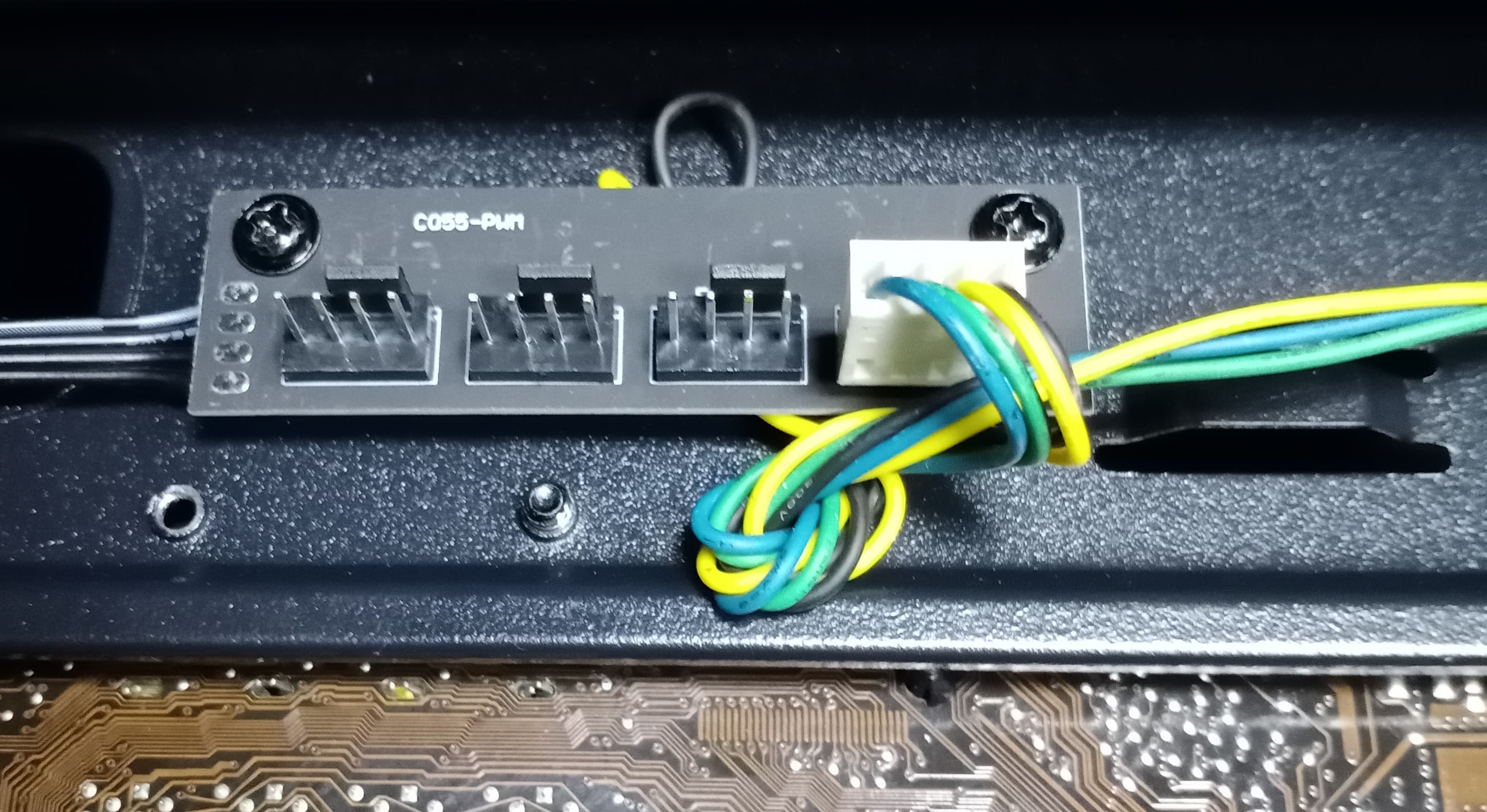 Вентиляторы имеют по два разъема: стандартный трехконтактный разъем с возможностью подключения к системной плате с управлением питающим напряжением и проприетарный трехконтактный разъем c колодкой 1×3 для управления подсветкой.