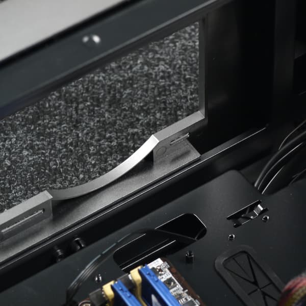 Фильтр зафиксирован на решетке при помощи клея, так что для очистки можно применить пылесос или промыть решетку водой. Выполнен фильтр из достаточно крупной пластиковой сетки, а потому бо́льшая часть мелких пылинок просочится сквозь него в корпус. С другой стороны, он отлично поможет от падения внутрь корпуса монет, ключей, каких-либо мелких предметов, да и от части пыли тоже спасет.