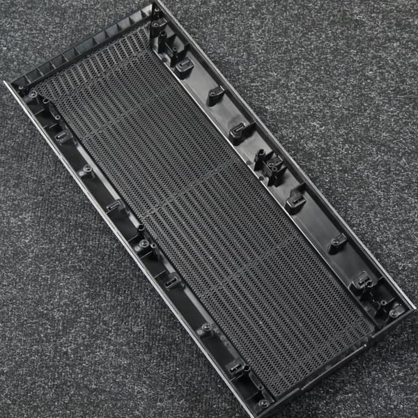 Несущая часть передней панели выполнена из пластика, который окрашен в массе. На ней закреплены серебристые элементы, окрашенные методом напыления с внешней стороны. Система крепления аналогична верхней панели — при помощи пластиковых штырей трубчатой формы, которые выполнены самораспорными.