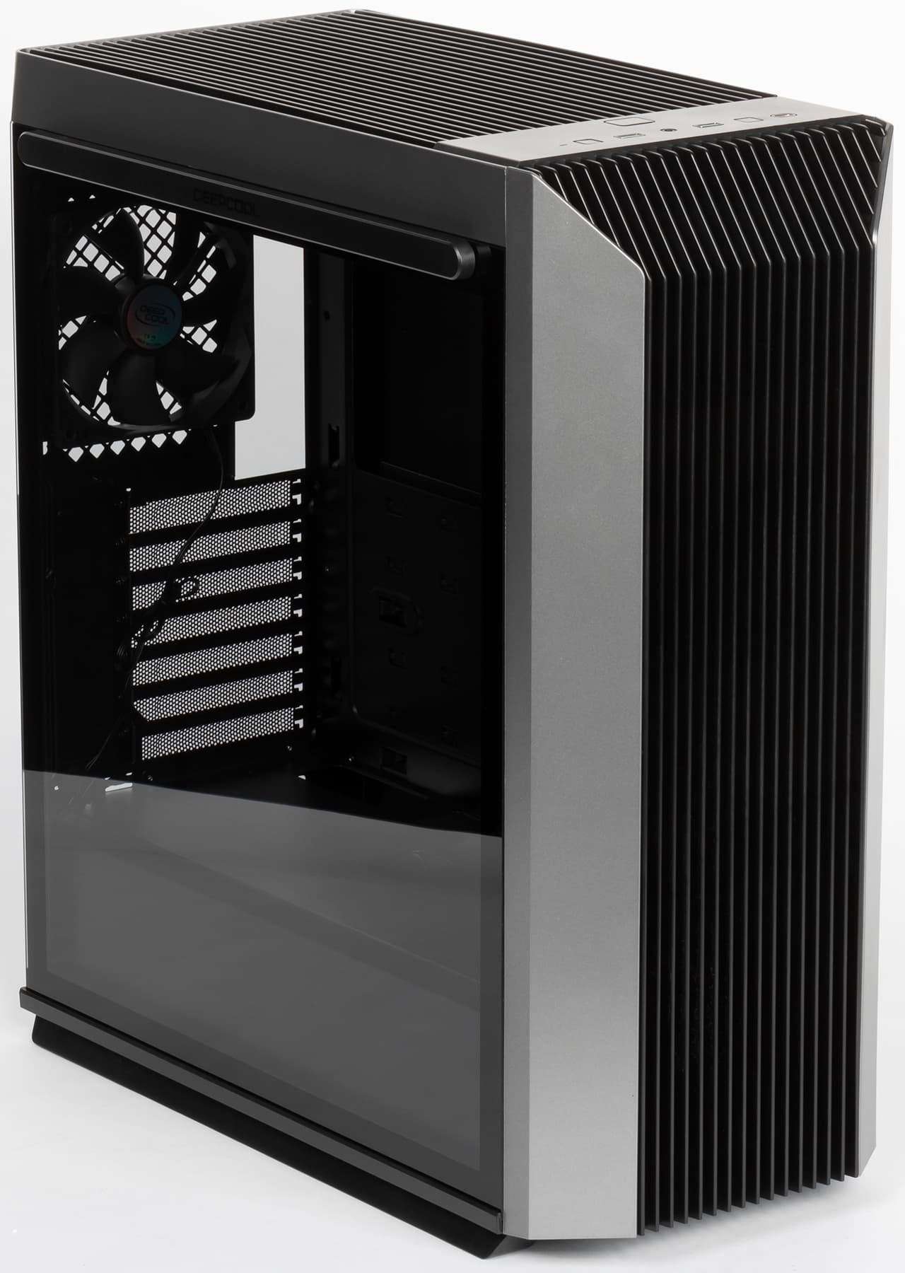 На этот раз у нас на тестировании — Deepcool CL500. Корпус имеет довольно своеобразный, но достаточно элегантный внешний вид. При первом взгляде на данное устройство, в голову приходит мысль о том, что перед нами какой-то прибор из сегмента климатической техники, больше всего он похож на воздухоочиститель. Такой дизайн вполне имеет право на жизнь и выглядит он вполне гармонично. Сочетание черного и серебристого цветов вполне классическое, да и серебристого тут не очень много. Так что дизайн вполне можно считать удачным.