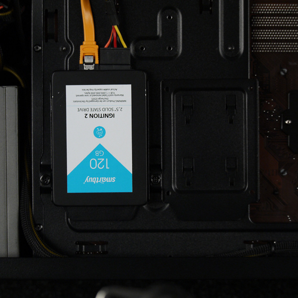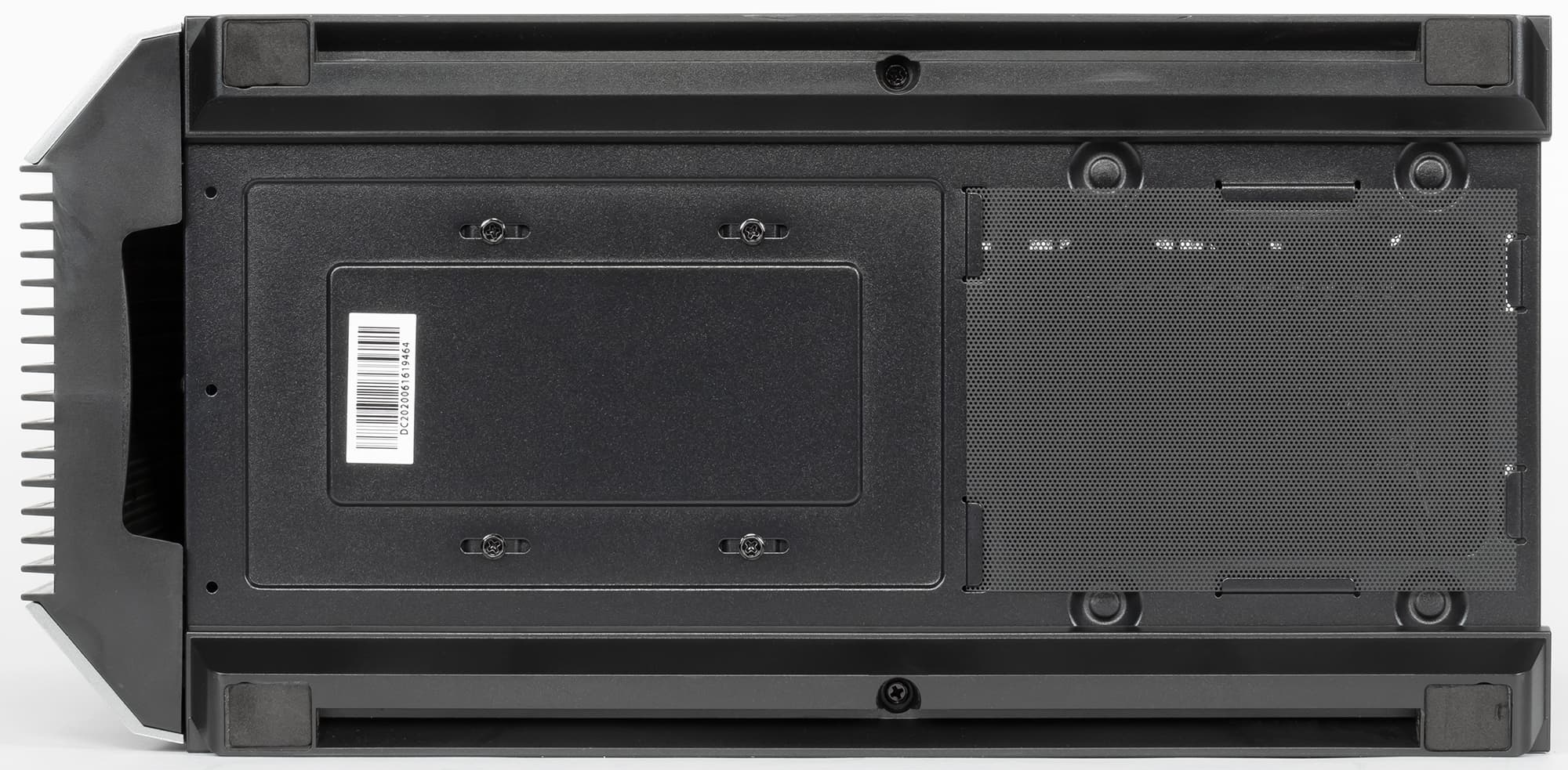 На оборотной стороне основания для системной платы также присутствуют места для установки накопителей. А вот посадочные места для накопителей с внешним доступом в корпусе полностью отсутствуют.