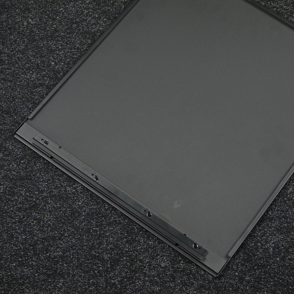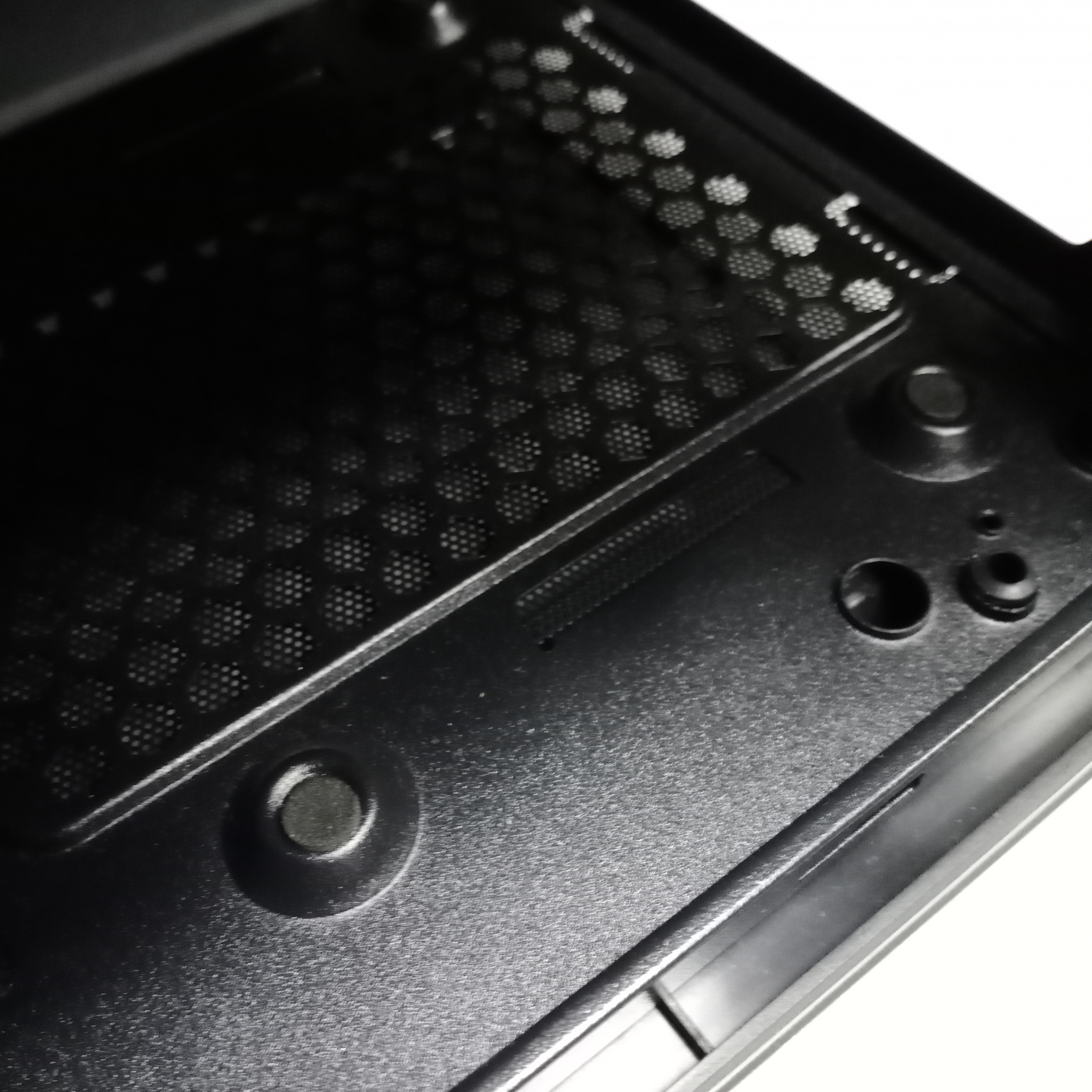Левая стенка стеклянная, причем стекло крепится не через сквозные отверстия, как это реализовано в подавляющем большинстве дешевых корпусов, а через стальную рамку, которая и прижимается магнитами к шасси корпуса. Подобный вариант более удобен при сборке.