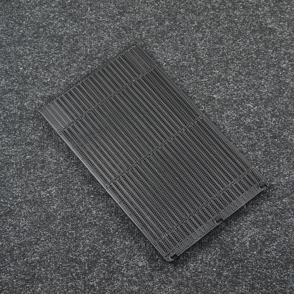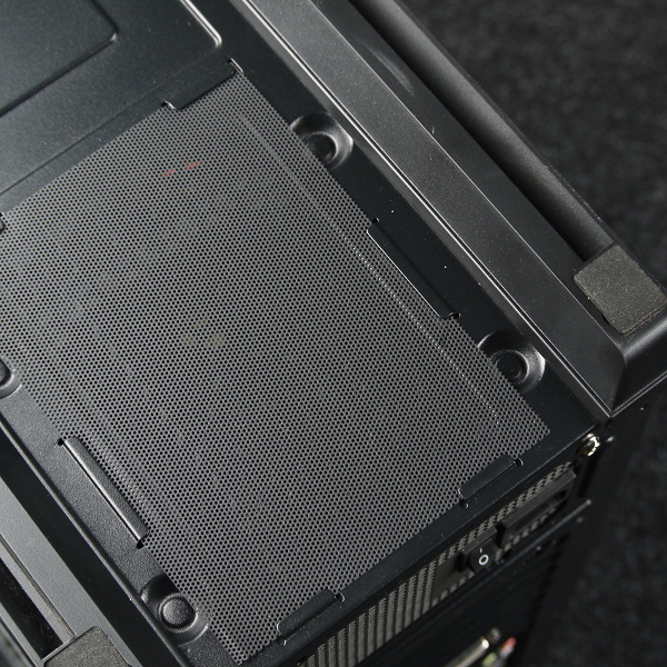 Фильтр зафиксирован на решетке при помощи клея, так что для очистки можно применить пылесос или промыть всю решетку водой. Выполнен он из достаточно крупной пластиковой сетки, а потому большая часть мелких пылинок просочится сквозь него в корпус. С другой стороны, он отлично поможет от падения внутрь корпуса монет, ключей, каких-либо мелких предметов, да и от части пыли тоже спасет.
