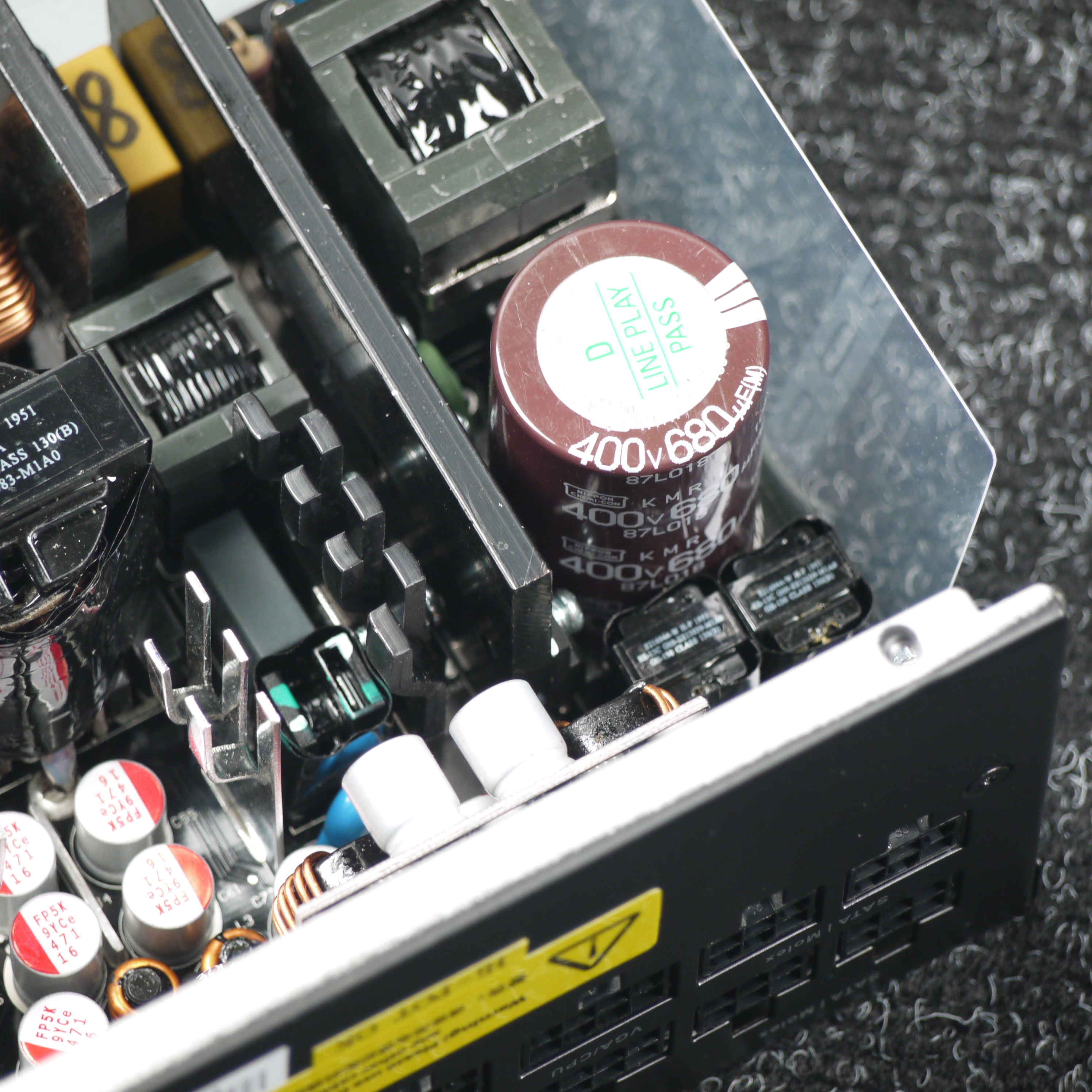 Конденсаторы в блоке питания имеют преимущественно японское происхождение. В основной массе это продукция под торговой маркой Nippon Chemi-Con. Установлено и большое количество полимерных конденсаторов.