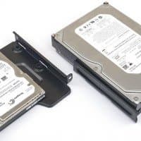 К универсальным салазкам накопители обеих размерностей крепятся винтами снизу, причем 2,5-дюймовые непосредственно к металлу салазок, а 3,5-дюймовые через резиновые амортизаторы. Для подключения лучше использовать SATA-кабели с Г-образными коннекторами.