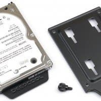 Лотки размерности 2,5 дюйма совсем простенькие. Накопители к ним тоже крепятся винтами, а сам лоток имеет прорези, которыми и закрепляется на соответствующих выступах горизонтальной перегородки нижнего отсека или тыльной части основания системной платы. Для фиксации используется винт с накатной головкой. SATA-кабели для SSD/HDD на лотках понадобятся с прямыми коннекторами.
