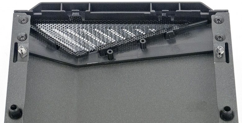 Из дополнительных вентиляционных отверстий есть только небольшая область с отверстиями в верхней части задней стенки, а также перфорация в заглушках слотов расширения.