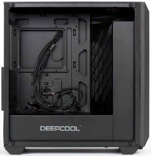Ну а сегодня перед нами корпус с гораздо более демократичным ценником, его предлагает компания Deepcool под названием Earlkase. На официальном сайте обозначены две модели, но это всего лишь цветовые вариации — черная, которая и досталась нам, а также белая (целиком, лишь левая стеклянная стенка имеет темную тонировку, как и у черного варианта).