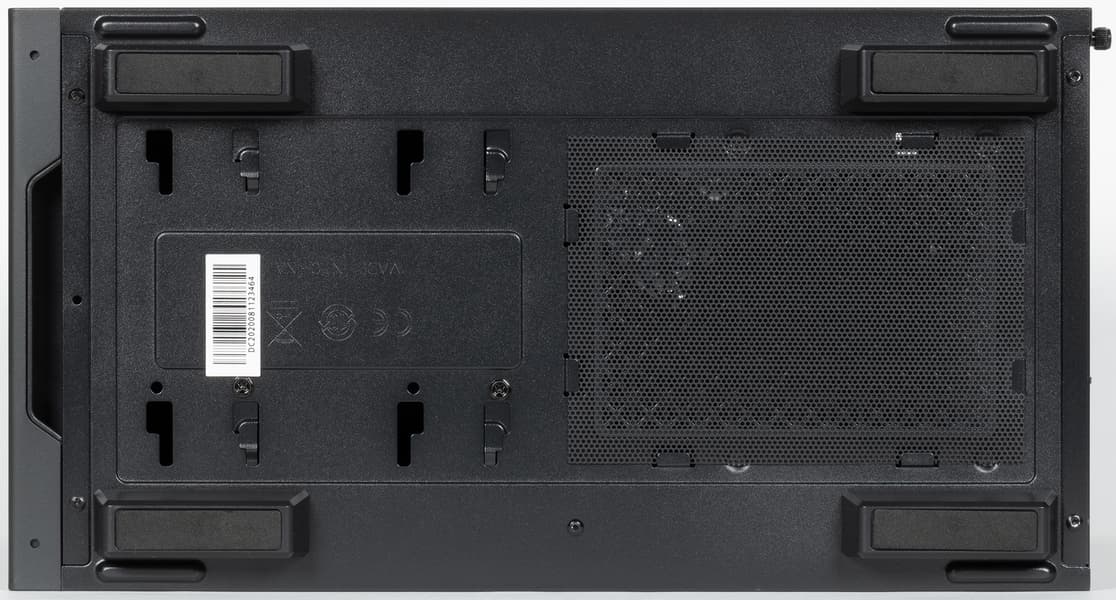 На оборотной стороне основания для системной платы присутствуют места для установки накопителей. А вот посадочные места для накопителей с внешним доступом в корпусе полностью отсутствуют.