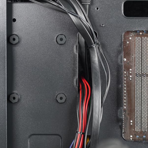 Для удобства прокладки проводов предусмотрены монтажные отверстия в основании для системной платы и кожухе блока питания, лепестковые мембраны в монтажных отверстиях не установлены.