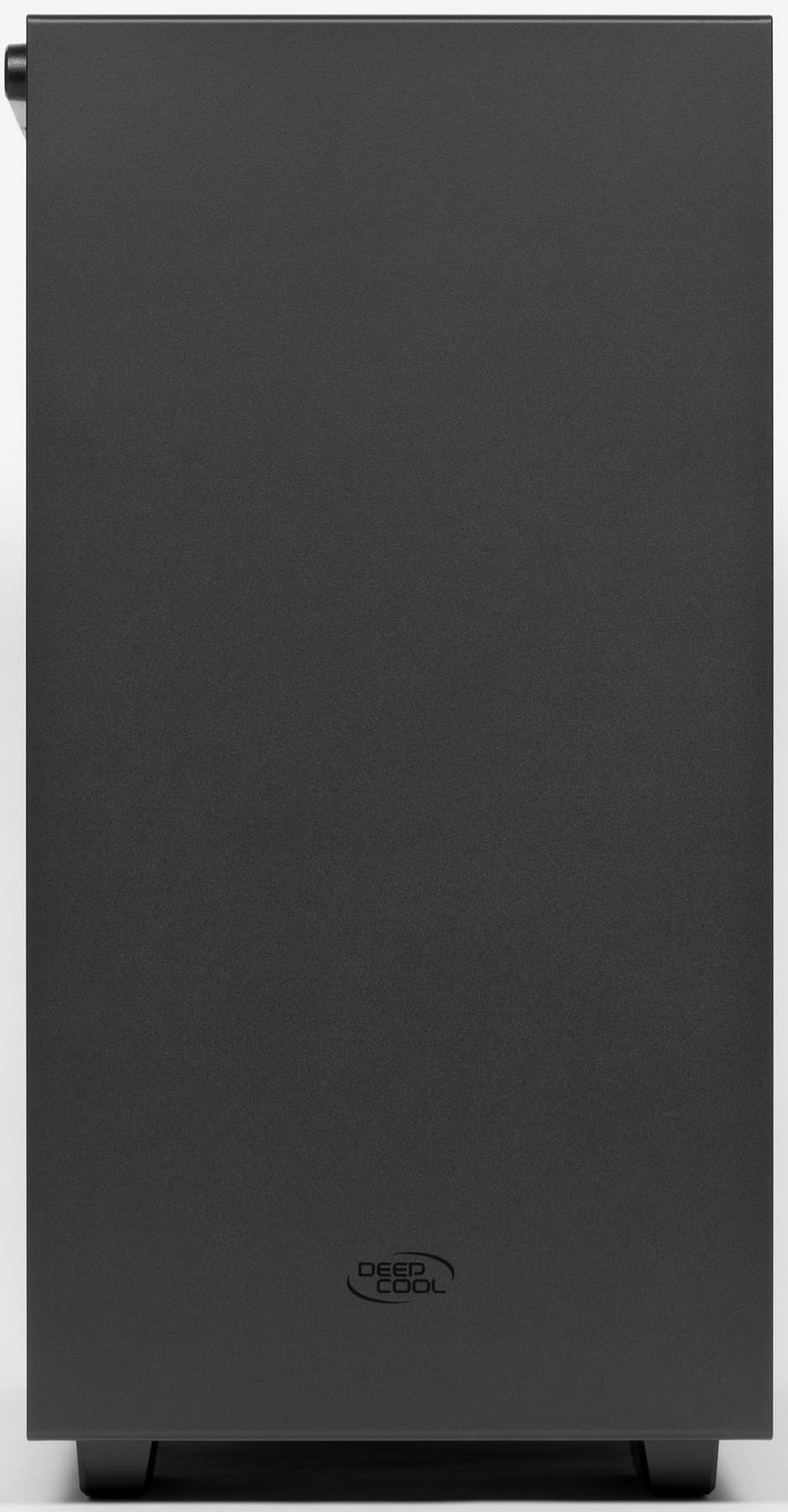 Вторая боковая стенка представляет собой стальную панель толщиной около 0,5 мм. Она имеет систему крепления с П-образными краями. Это намного удобнее пазогребенной системы, которая встречается в большинстве дешевых корпусов. Фиксация стенки осуществляется двумя цельнометаллическими винтами с накатной головкой.
