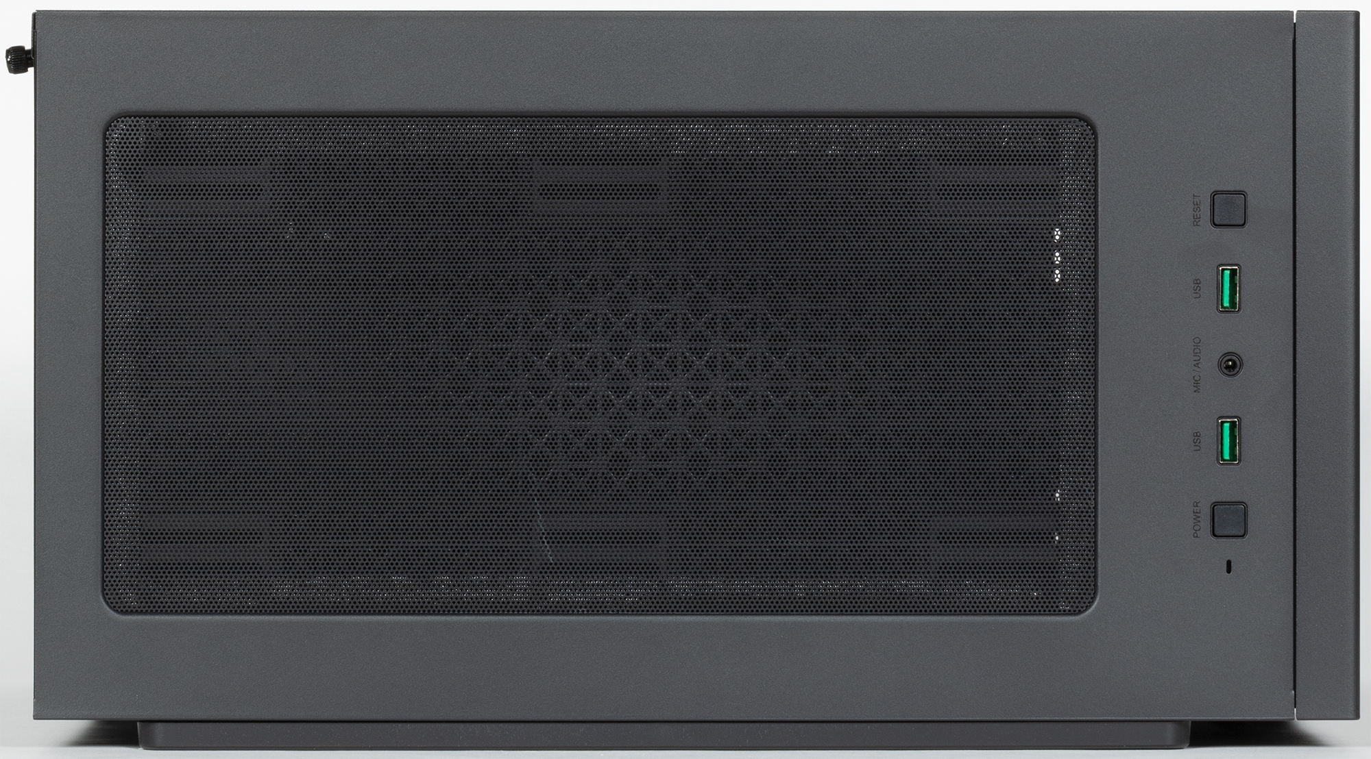Корпус существует в двух модификациях: полностью черном оформлении (Macube 110) и белом с черной левой стенкой (Macube 110 WH). Второй вариант исполнения выглядит поинтереснее, но мы для ознакомления получили черный вариант.