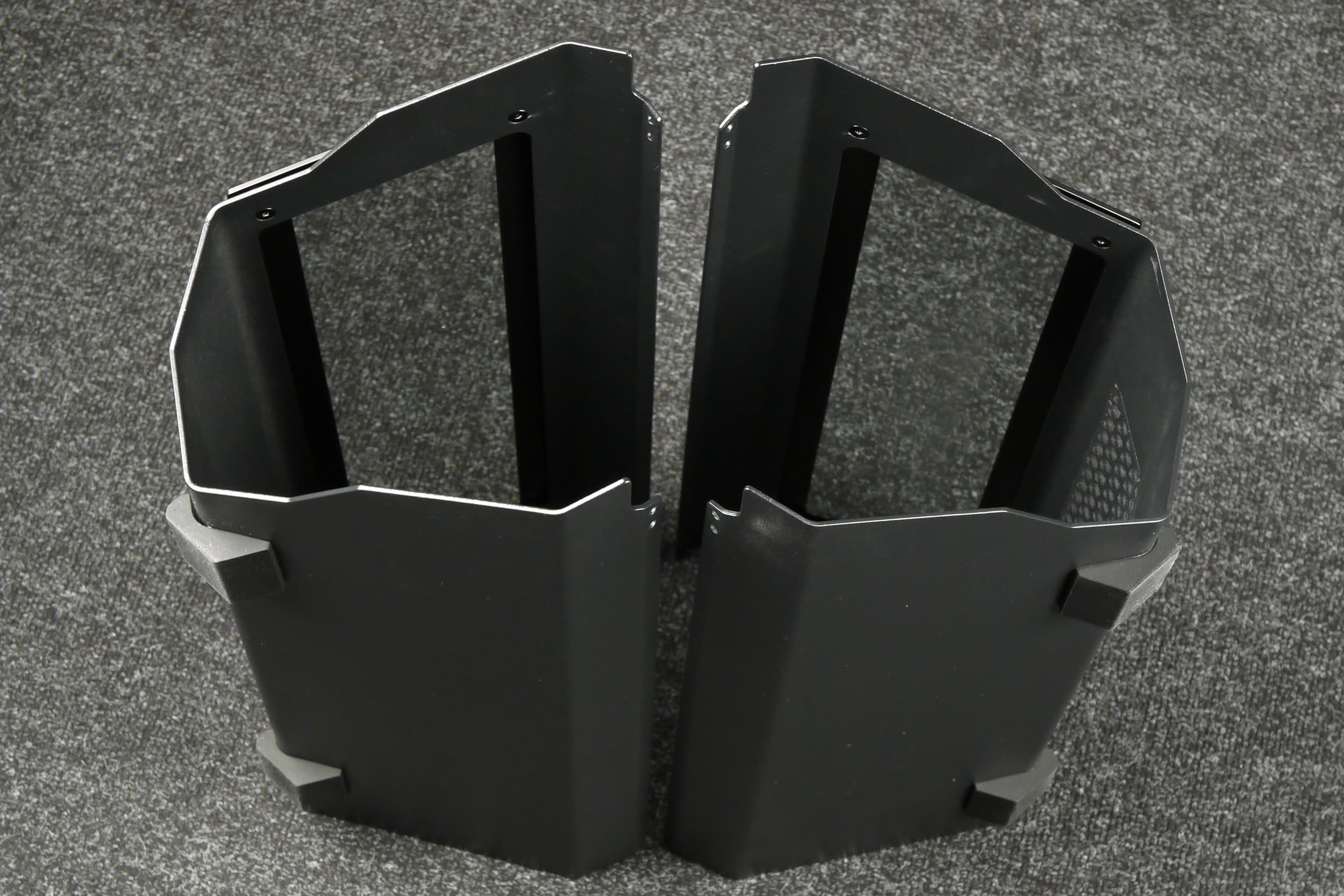 Каждая из стенок фиксируется двумя винтами с накатной головкой. Устанавливаются стенки при помощи обычного накладного крепления, то есть стенка просто опускается сверху на шасси корпуса на заранее изготовленное посадочное место, после чего задвигается до упора. Края стенок не имеют зацепов, они ровно отшлифованы. А так как толщину они имеют довольно значительную, то порезаться ими невозможно. Стенки похожи друг на друга, но взаимозаменяемыми не являются.