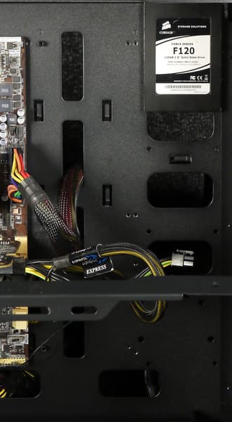 Таким образом в корпусе можно разместить до шести накопителей 2,5” или три накопителя 2,5” и еще три накопителя 3,5”. Для дизайнерского корпуса это довольно много, обычно в такие решения, за очень редким исключением, можно поставить не более трех накопителей.