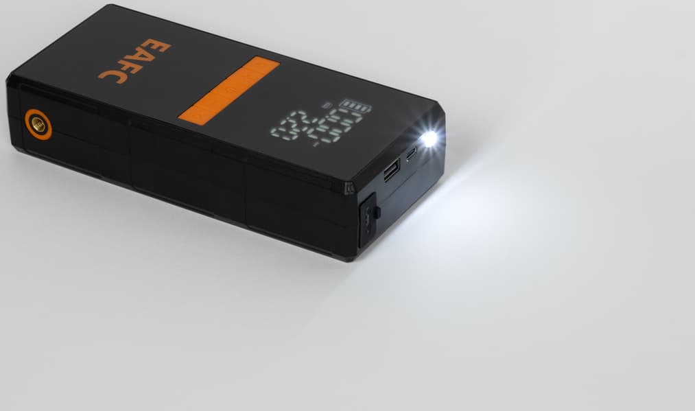 Уточнить реальную емкость встроенной батареи EAFC JC11 не удалось, однако по результатам тестирования можно предположить, что она примерно та же, что и у Baseus, то есть около 30 Вт·ч, и в обоих случаях это батареи 4S с четырьмя последовательно соединенными ячейками и повышенным выходным напряжением. Конечно, запасаемая энергия довольно скромная, но к существенным недостаткам это относить вряд ли можно, напомним: для основной функции — пуска автомобильного двигателя — этот параметр решающей роли не играет, здесь важнее токи (огромные, но очень кратковременные), компрессор от полного заряда накачает «с нуля» минимум пару колес у легкового автомобиля, да и пауэрбанк сможет восполнить энергию в любом разряженном смартфоне, а то и в двух; в обычной жизни этого вполне достаточно, потом можно просто зарядить батарею бустера.
