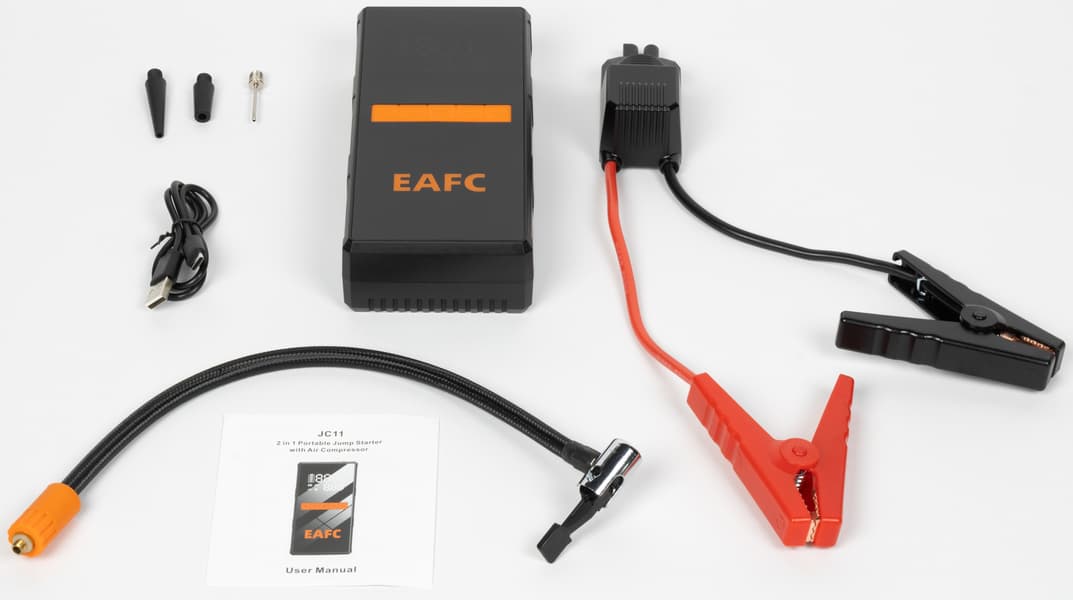 Сейчас нам достался его аналог гораздо менее известного китайского бренда — EAFC JC11. Помимо различных бустеров, под маркой EAFC также предлагаются различные аксессуары для автомобилей: зарядные устройства для АКБ, инверторы для преобразования бортсети в переменное напряжение 220 вольт, компрессоры для шин и мойки высокого давления.