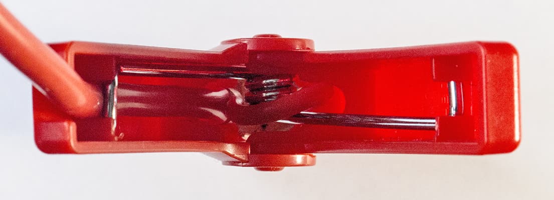 Провода к зажимам подключены аккуратно и грамотно: каждый подходит к одной из «челюстей», а к другой имеется перемычка, вид соединений — обжим. Всё то же мы видели и у Baseus BS-CH003.