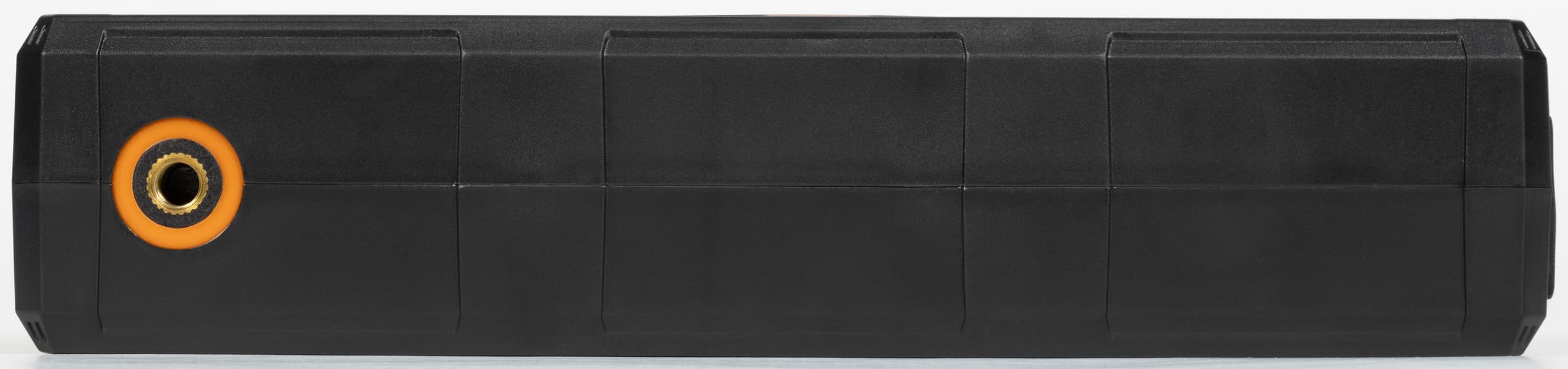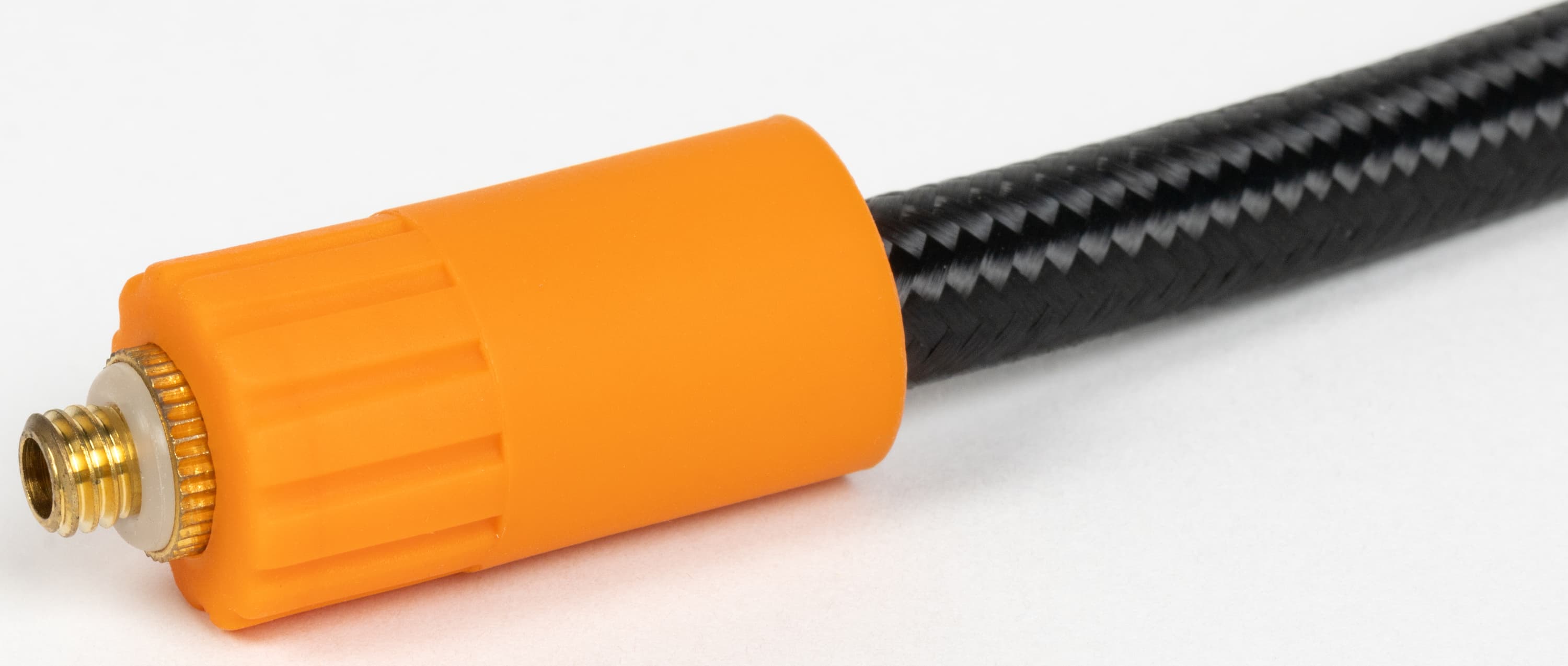 На длинном торце имеется резьбовая втулка выхода компрессора, для заметности в условиях плохого освещения снабженная оранжевой рамкой, накладкой такого же цвета снабжен и соответствующий конец шланга.