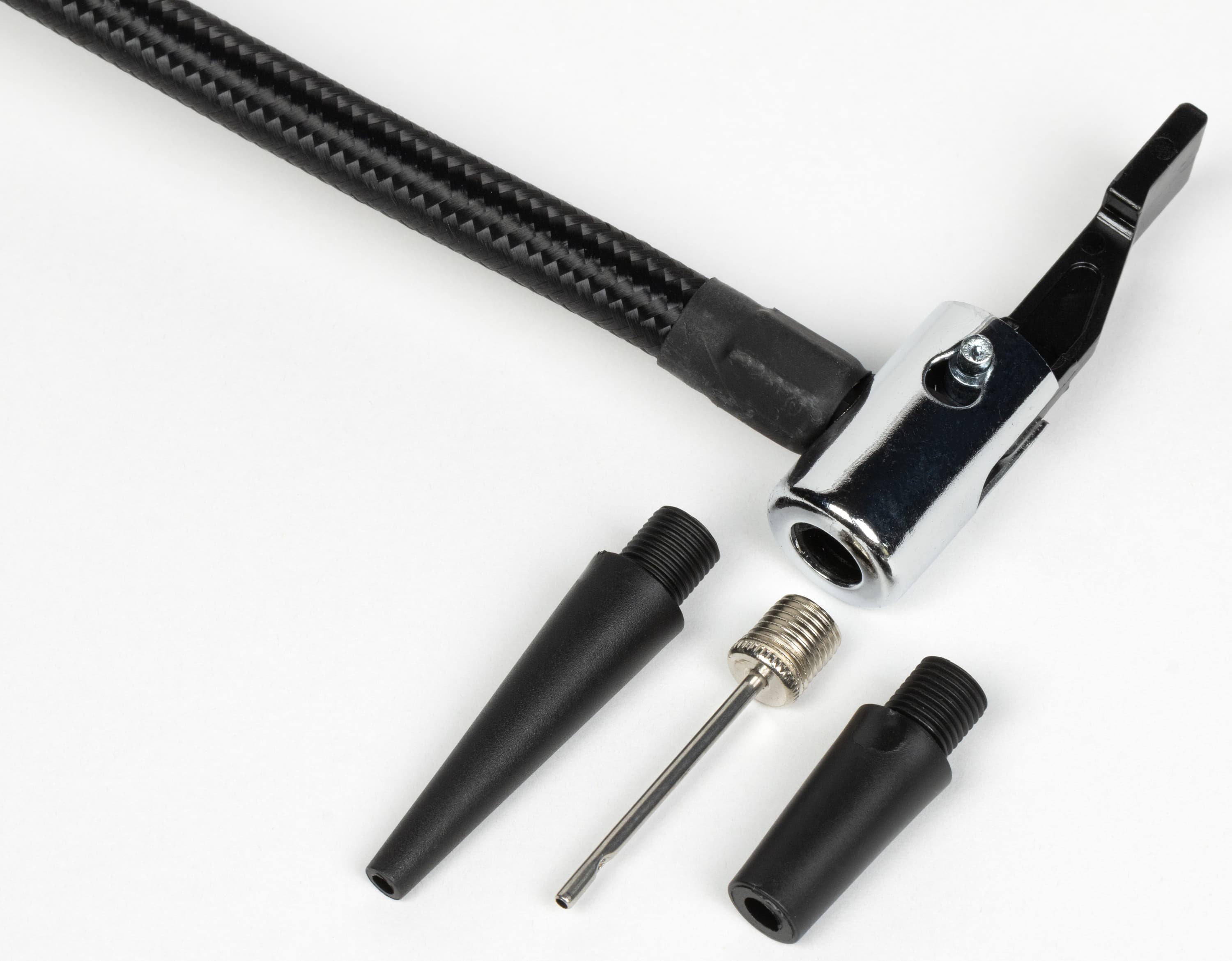 Прочее у EAFC и Baseus одинаковое: для крепления к вентилю колеса используется соединитель-«краник» с фиксирующим рычагом (надевать его на вентиль колеса проще и быстрее, чем резьбовую втулку, но иногда приладить такой «краник» попросту невозможно) и без клапана-дефлятора для стравливания давления с контролем величины. Имеется комплект насадок для накачивания самых разных предметов — от мячей до воздушных шариков.