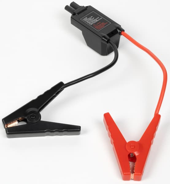 Из контроллера выходят провода сечением 10AWG (то есть сечение чуть более 5 мм²) с зажимами-«крокодилами» для подключения к бортсети. Длина свободной части красного провода 17,5 см, черного — 13,5 см, что в сумме заметно больше, чем у Baseus, где такие же провода 10AWG были по 12 см, то есть подключать JC11 будет удобнее, а дополнительное падение напряжения на немного более длинных проводах при работе стартера не будет существенным.