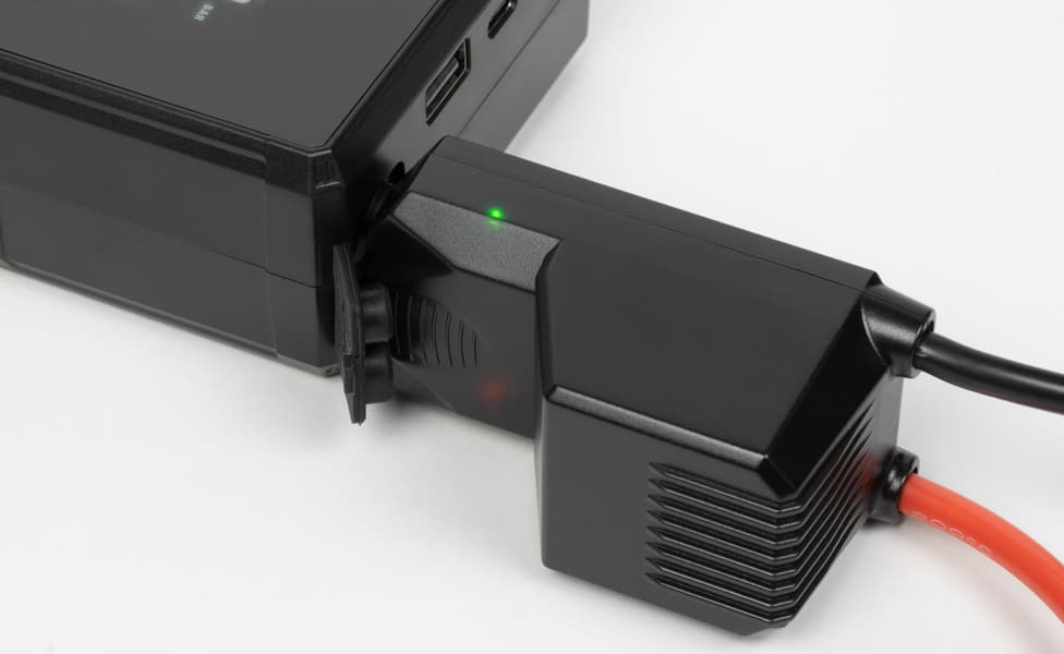 После запуска двигателя начинает работать генератор, подавая в бортсеть напряжение около 14 В, пойдет заряд штатной АКБ автомобиля, а для батареи бустера в общем случае это может быть опасно, что прежде всего касается моделей с тремя последовательно соединенными литий-ионными ячейками (3S). Простейшей защитой в таких случаях является диод, включенный в разрыв одного из проводов и позволяющий току течь только из бустера в автомобиль, но не наоборот, причем используют диоды Шоттки, имеющие малое прямое падение напряжения, и включают несколько штук параллельно, чтобы обеспечить большой ток без их критического нагрева. В таких случаях на одном из проводов (красном, иного нам не встречалось) имеется небольшая коробочка с платой, на которой распаяны эти диоды.