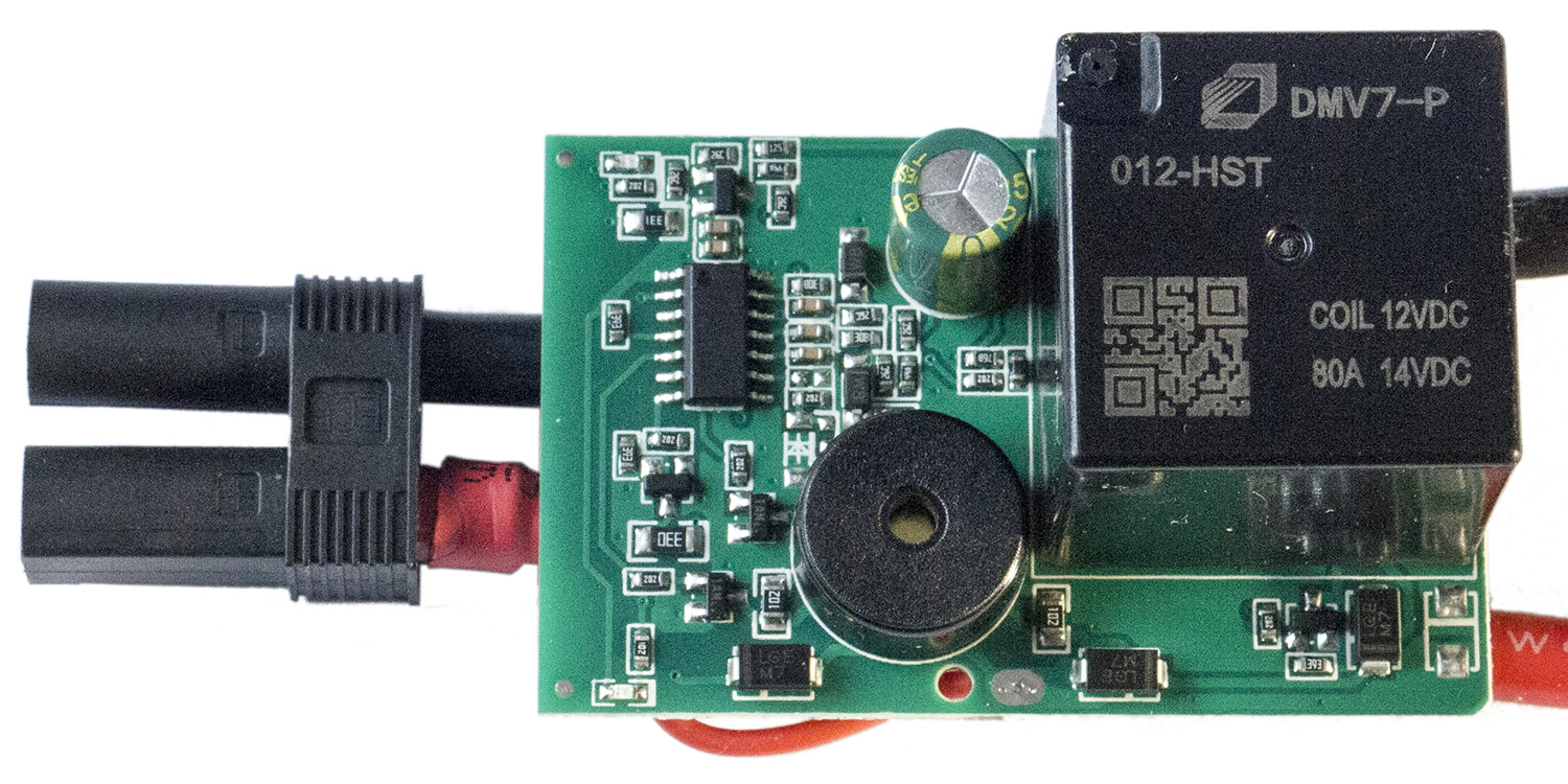 Самый крупный элемент на его плате — электромеханическое реле DMV7-P 012HST с обозначенным максимальным коммутируемым током 80 ампер (в контроллере бустера Baseus реле было на 70 А, но разница в сравнении с заявленными пусковыми токами в 500-600 ампер не принципиальная).