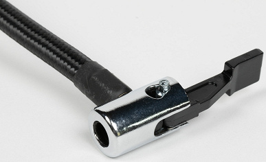 Шланг имеет длину 30 сантиметров, то есть при накачивании установленных на автомобиль колес во многих случаях устройство придется держать на весу. Это не очень-то удобно, зато позволит дольше сохранять в приличном состоянии корпус бустера, пластик которого мягкий, а потому быстро покрывается царапинами. Напомним: шланг у Baseus BS-CH003 длиной всего 15 см.