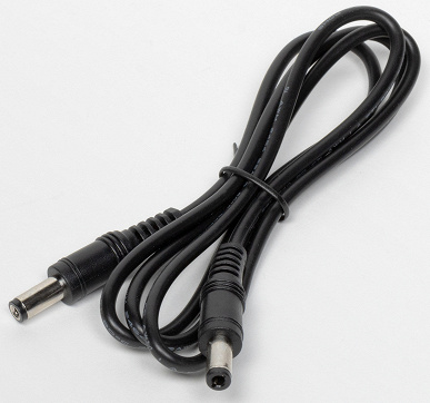 В комплекте кабели для подключения к сети переменного тока (длина 1,35 м, сечение проводов 3х1,0 мм², то есть соответствует заявленному максимальному входному току) и к автомобильному прикуривателю (длина та же, сечение тоже обозначено — 14AWG или 2 мм²), оба снабжены лентами-липучками для закрепления в свернутом состоянии, а также кабель с штырьковыми разъемами DC5521 и DC5525 для соединения нагрузок с 12-вольтовым выходом (длина 0,9 м, сечение 22AWG или 0,33 мм²). Есть и набор печатной документации.