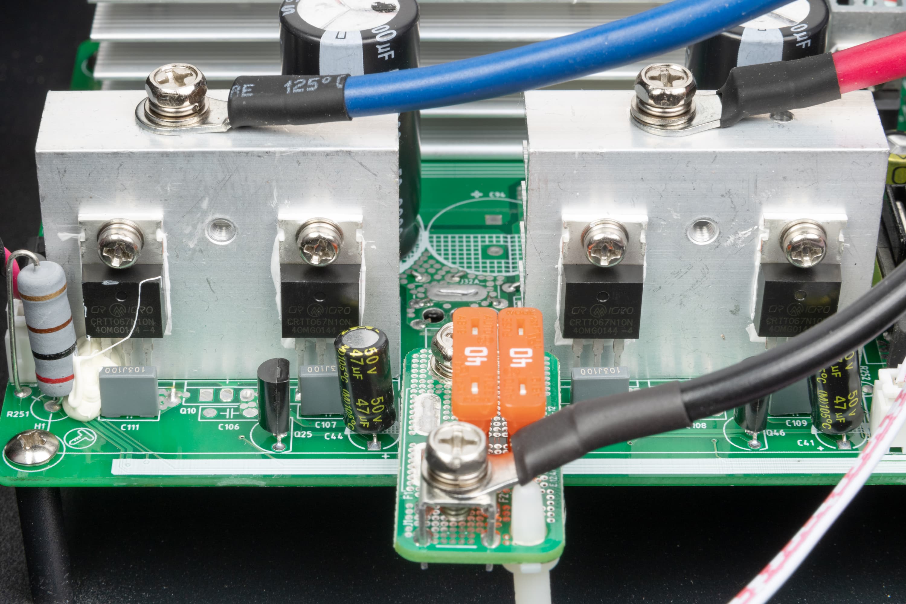 Предохранители цепи батареи (два параллельно включенных на 40 А каждый) распаяны на отдельной маленькой платке.