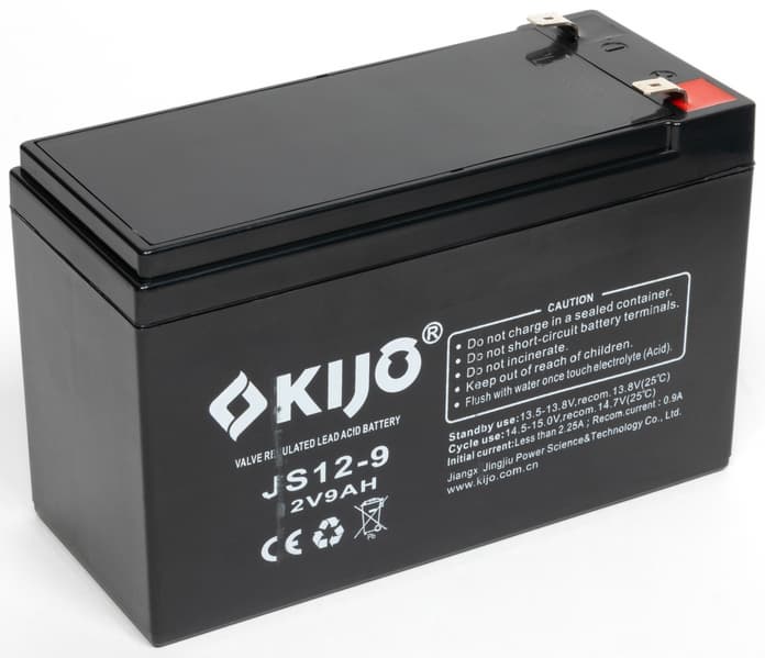 В нашем экземпляре был установлен набор из трех соединенных последовательно свинцово-кислотных аккумуляторных батарей Kijo JS12-9 с заявленными напряжением 12 В и емкостью 9 А·ч.