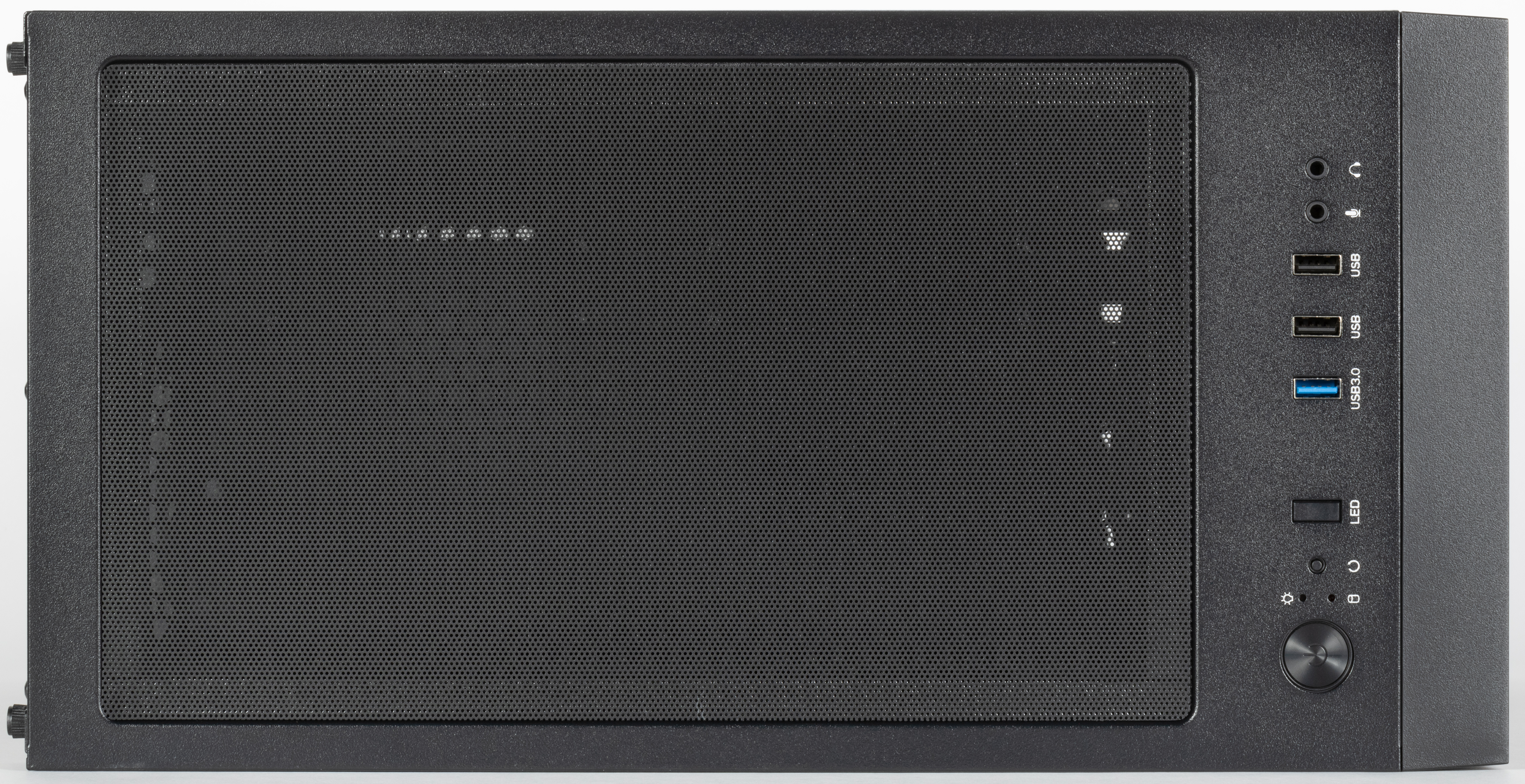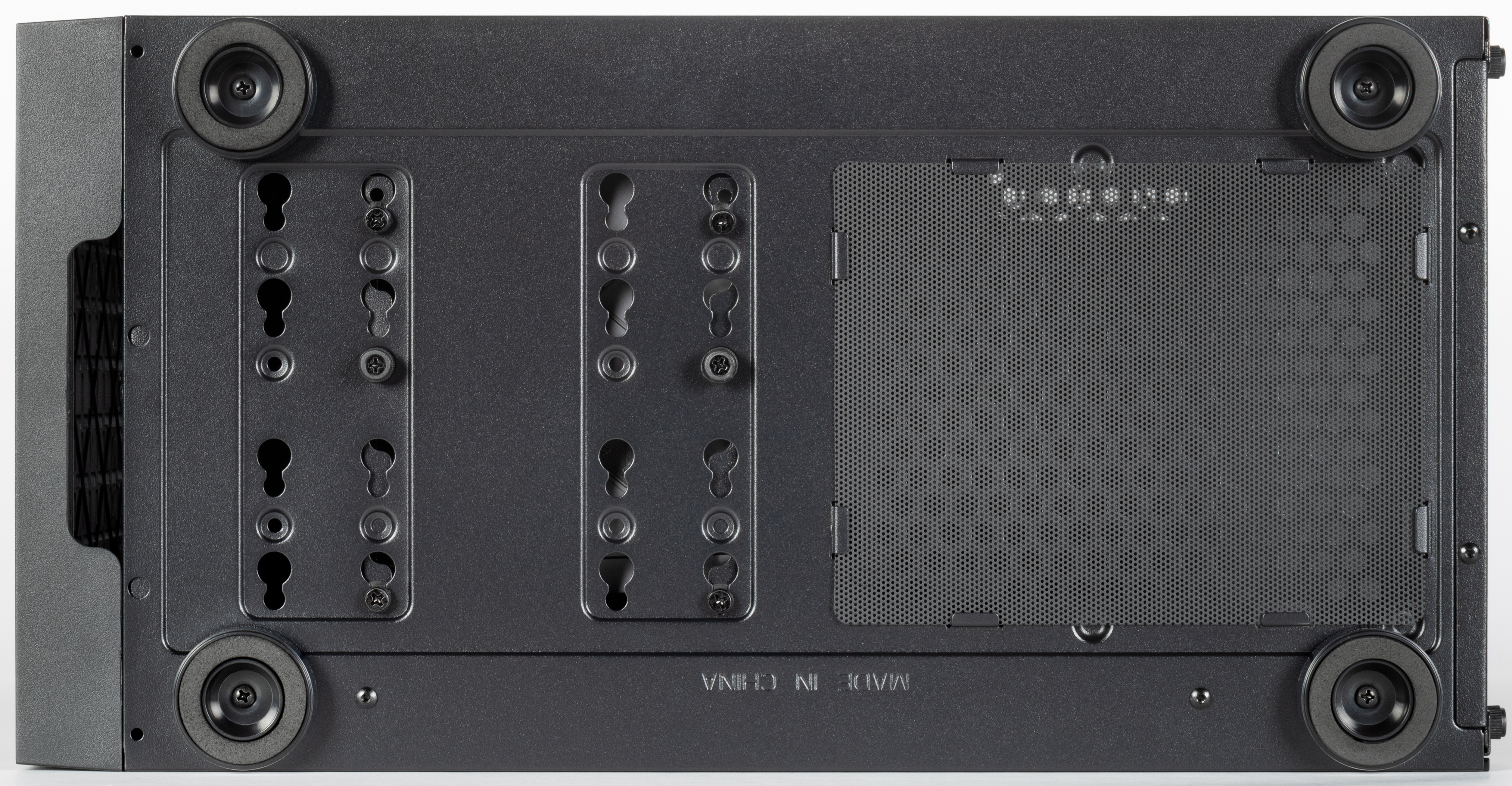Единственного штатного вентилятора будет достаточно для многих возможных конфигураций, а если сборщик сочтет необходимым, то сможет добавить до пяти дополнительных или установить радиаторы СЖО впереди и/или вверху. Предусмотрены три фильтра — на верхней и фронтальной поверхностях шасси, а также на днище в месте установки блока питания.