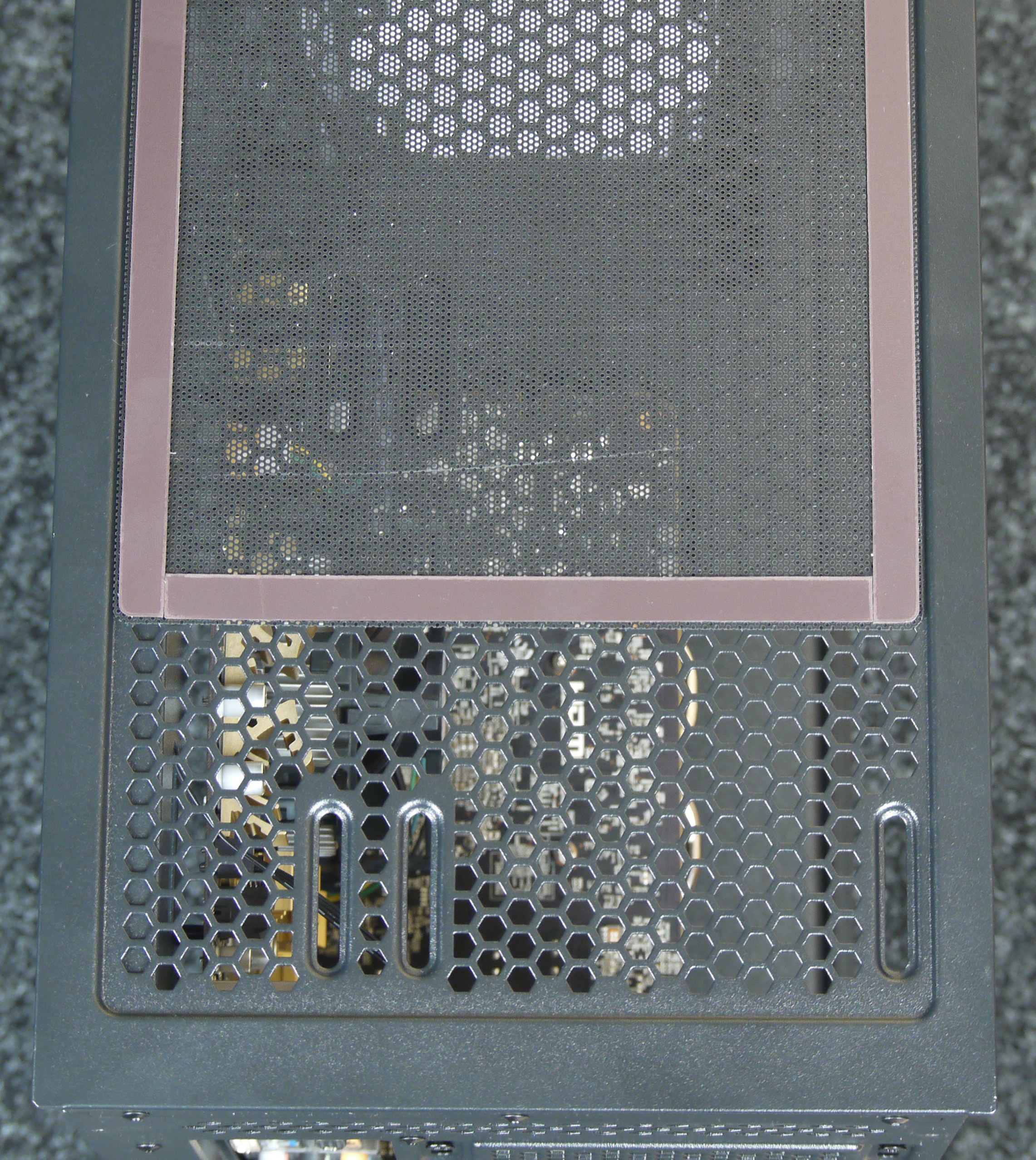 Подобный фильтр имеется и на днище в месте установки блока питания, но он значительно меньше по размеру и удерживается не магнитами, а штампованными Г-образными выступами со всех четырех сторон. Для его извлечения и установки на место при обслуживании корпус придется класть на бок или сильно наклонять.