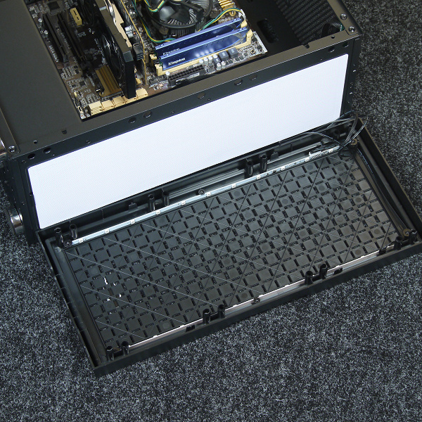 В качестве штатных источников подсветки используются две линейки RGB-светодиодов, расположенные изнутри на вертикальных боковых кромках лицевой панели, а также установленный сзади вентилятор со встроенным набором светодиодов.