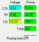 При типичном распределении мощности по каналам отклонения от номинала не превышают 3% по каналу +3.3VDC, 3% по каналу +5VDC и 4% по каналу +12VDC.