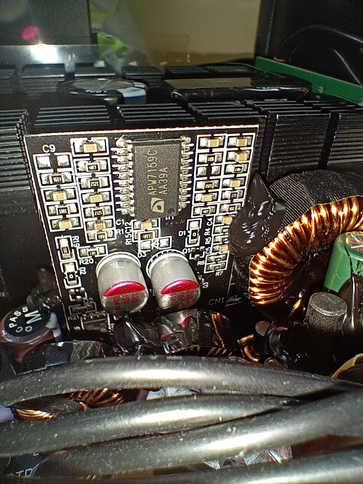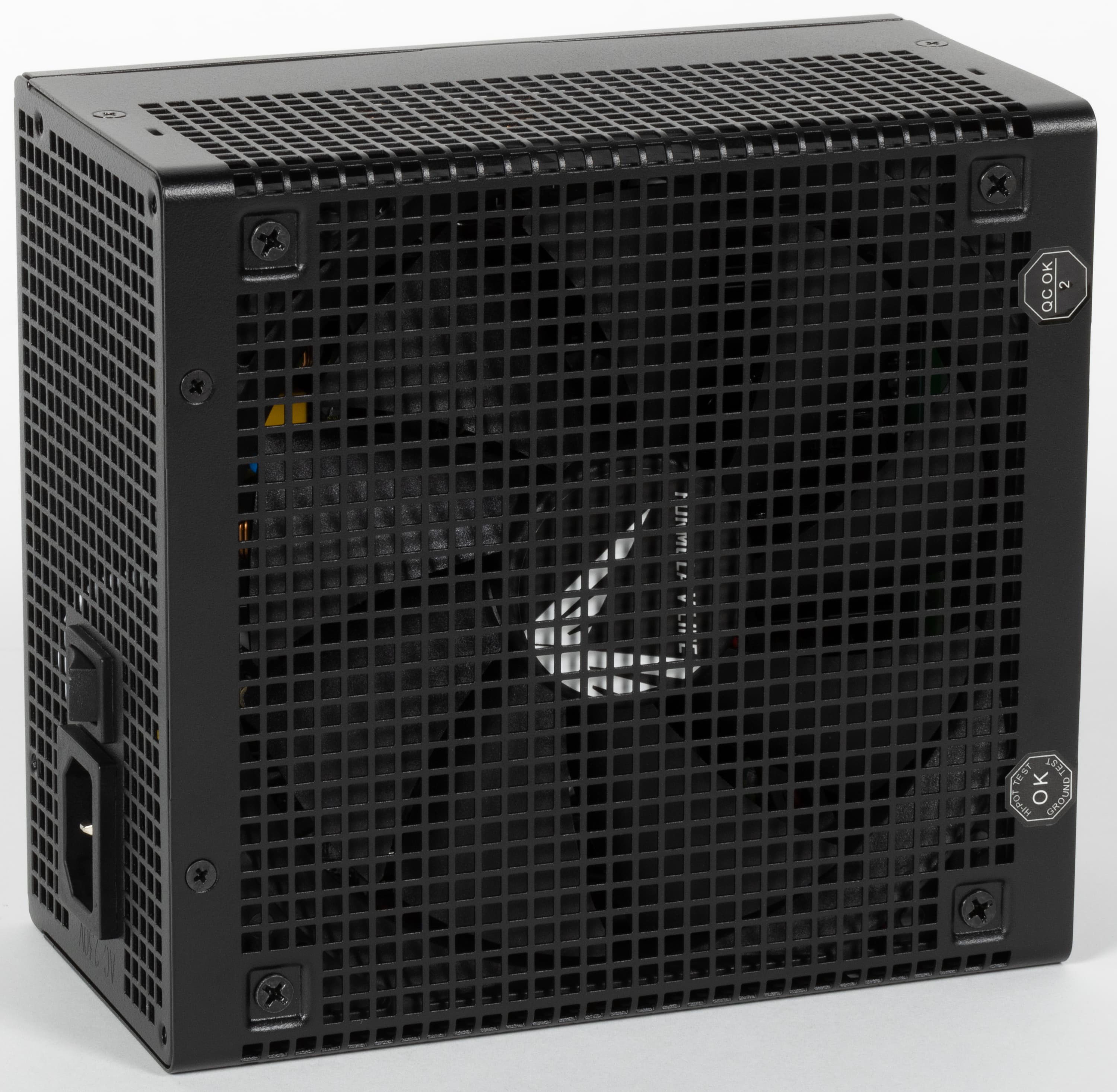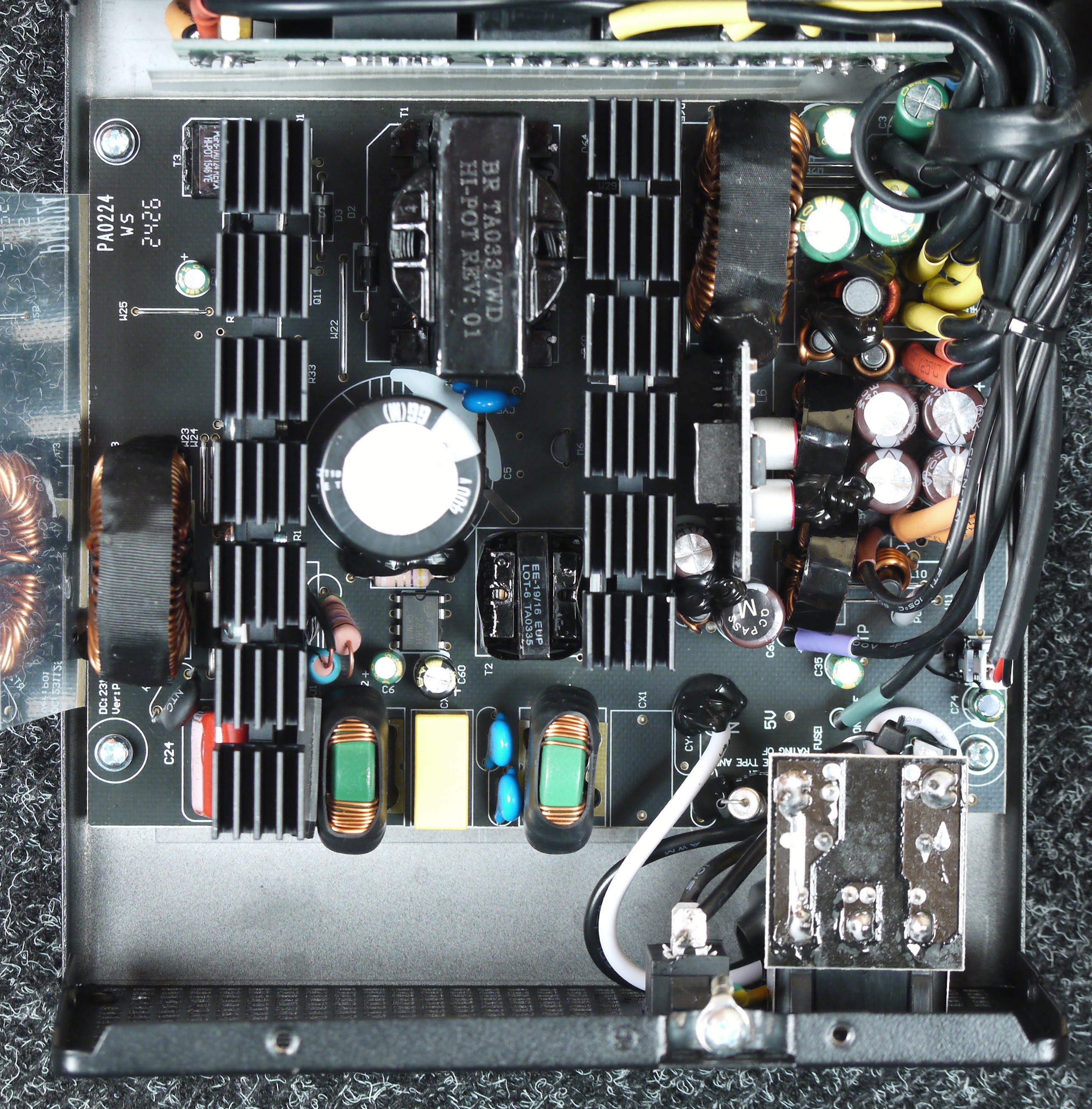 Блок питания оснащен активным корректором коэффициента мощности, но имеет не слишком широкий диапазон питающих напряжений от 200 до 240 вольт.