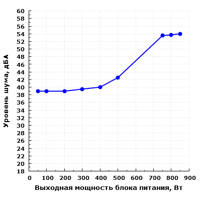 При работе в диапазоне мощности до 300 Вт включительно шум блока питания находится на повышенном уровне для жилого помещения в дневное время суток. Подобный уровень шума довольно сильно заметен, но работать за компьютером в подобных условиях вполне можно, особенно в офисном помещении. А вот спать при таком шуме неприятно.