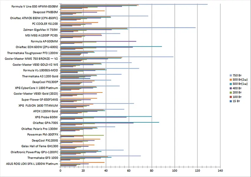 | Zalman GigaMax III 750W | 232 | 1013 | 1954 | 3898 | 4900 | 4893 | 7608 |