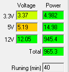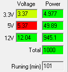 При типичном распределении мощности по каналам отклонения от номинала не превышают 3% по каналу +3.3VDC, 3% по каналу +5VDC и 1% по каналу +12VDC.