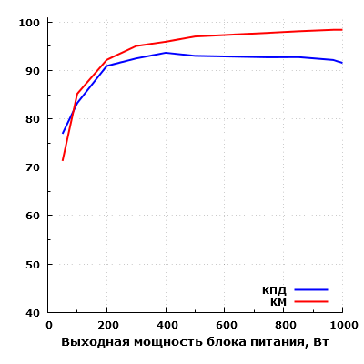 По суммарной экономичности на низкой и средней мощности данная модель занимает условно среднее положение в нашем списке мощных БП на момент тестирования.