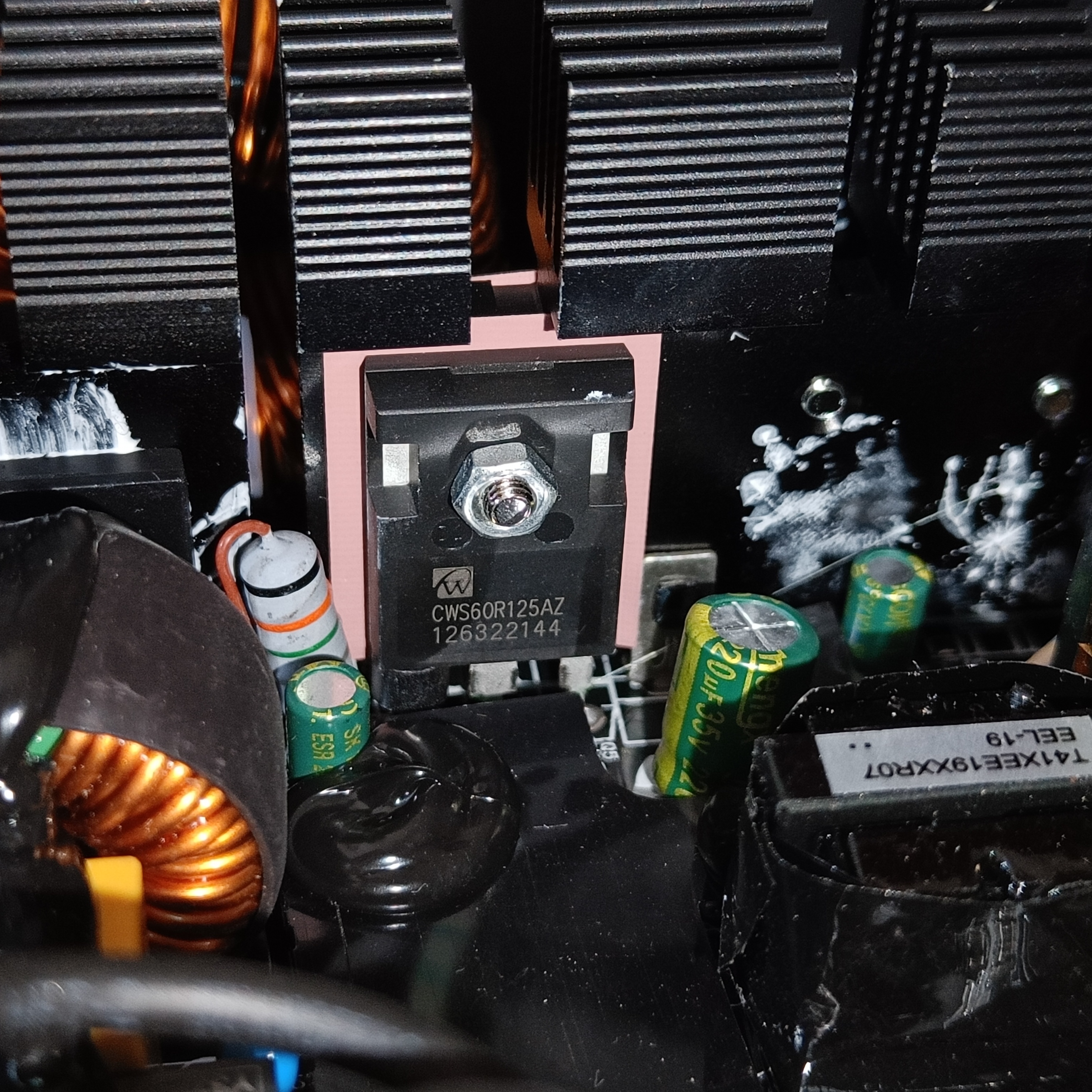 Полупроводниковые элементы высоковольтных цепей размещены на одном общем радиаторе, там же расположен и входной выпрямитель.